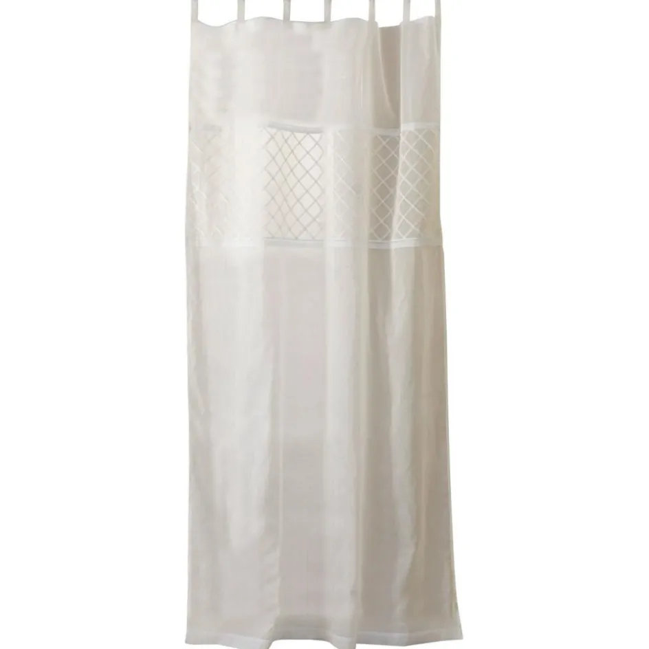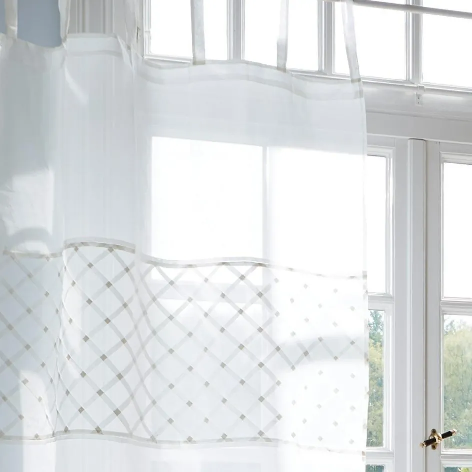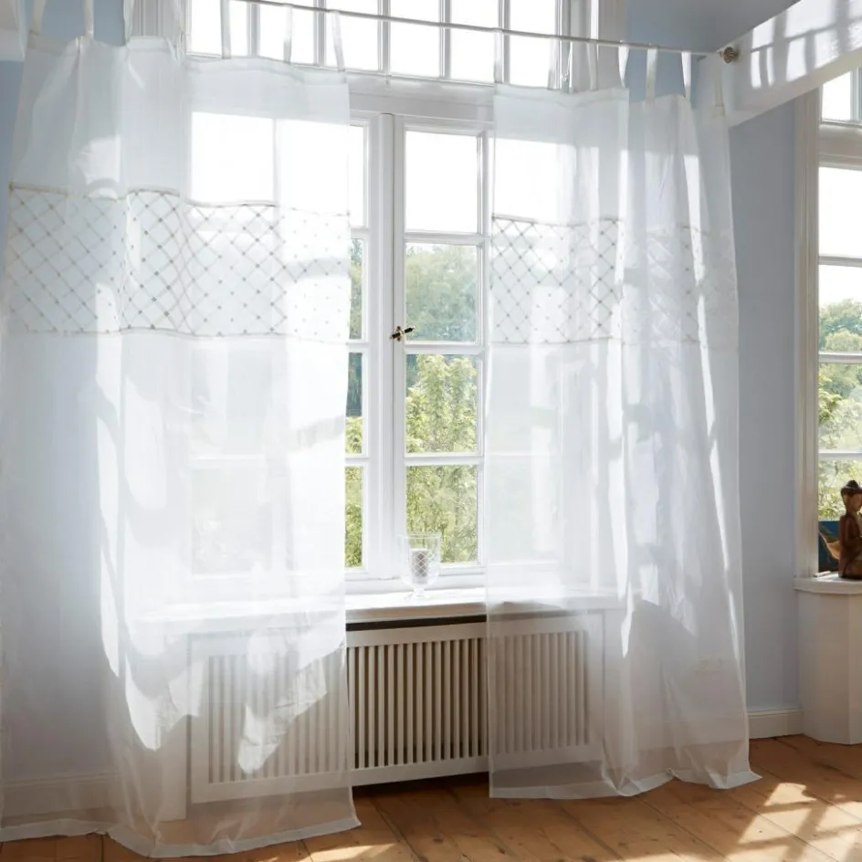 Ein zarter Sichtschutz, der sehr klassisch und duftig wirkt. Das dezente Flecht- und Gittermuster im oberen Teil unterstreicht diesen Eindruck und bildet ein schönes Detail. Dank dekorativer Schlaufen lässt sich dieser textile Traum ganz einfach an einer Gardinenstange anbringen. Das Design wirkt besonders edel und leicht, weist zu viel Licht und fremde Blicke aber dennoch zuverlässig ab. Sehr geschmackvoll wirkt es zu klassischen Interiors in antiken Wohnwelten sowie zum Shabby-Chic und Landhaus-Stil. Großzügige Maße machen es zur idealen Wahl auch bei hohen und großen Fenstern.