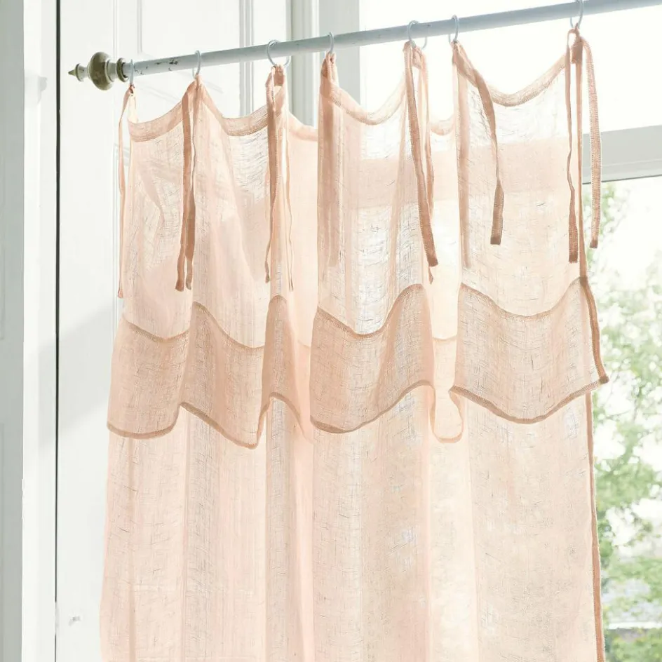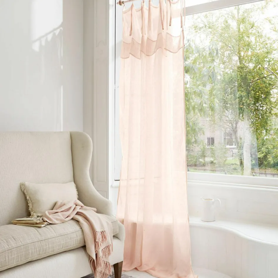 Das gewebte Leinen dieser Gardine sorgt für ein dezentes Spiel aus Licht und Schatten. Die zarte Farbe harmoniert wunderbar mit verschiedenen Einrichtungskonzepten und verleiht Ihrem Zuhause eine natürliche und gleichzeitig moderne Note. Der Leinenstoff schafft nicht nur eine angenehme Atmosphäre, sondern ist durch seine Bindebänder auch besonders praktisch in der Anbringung. Ein kleiner Volant im oberen Bereich setzt spannende Akzente. Diese Gardine verleiht jedem Raum eine dezente Leichtigkeit, die sowohl Wohnräume als auch Schlafbereiche optisch aufwertet.