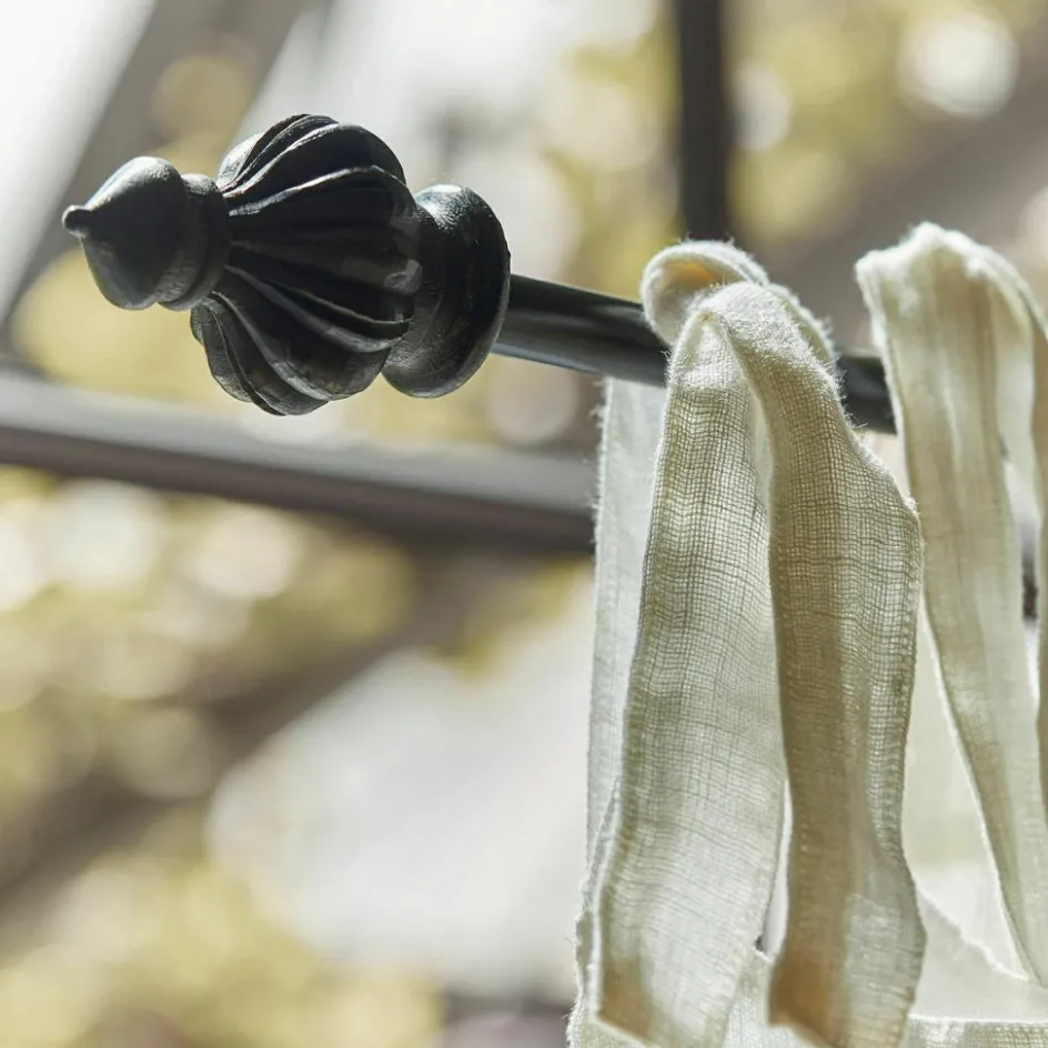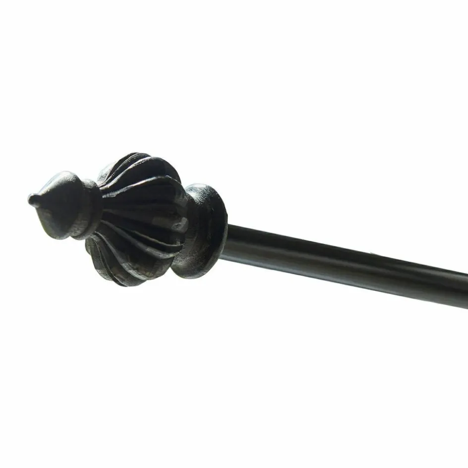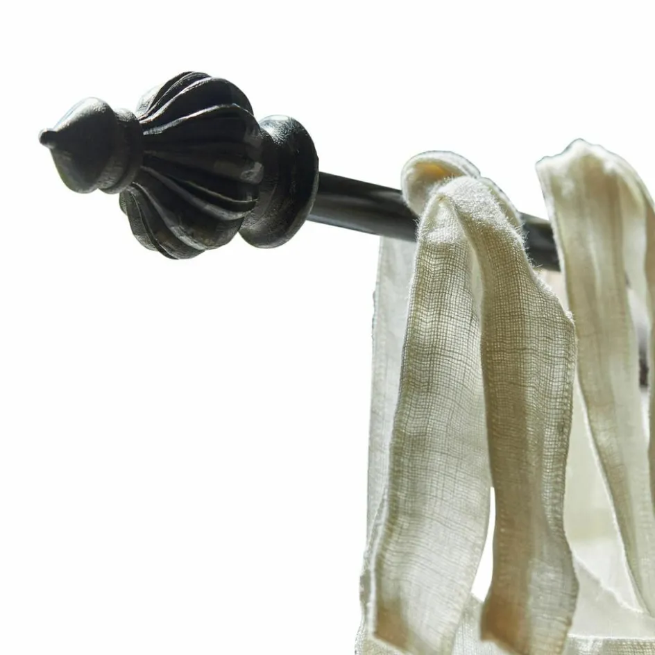 Eine Gardinenstange kann eindeutig mehr als nur einer schönen Gardine als Aufhängung dienen, sie kann das i-Tüpfelchen bei der Ausprägung eines stimmigen Interieurs sein. Deshalb hat diese Gardinenstange besonders liebevoll gearbeitete Holzknäufe an den beiden Enden, die für den romantisch-nostalgischen Touch sorgen. Jeder Knauf wurde kunstvoll von Hand aus edlem Mangoholz gedrechselt und zusätzlich mit einer stilvollen Schnitzerei verziert. Das dunkle Antik-Finish des Holzes harmoniert perfekt mit dem dunklen Metall der Gardinenstange, die über eine Teleskopfunktion verfügt und deshalb in der Länge variabel Ihrem individuellen Fenstermaß angepasst werden kann. Inkl. Material zur Befestigung an der Wand.