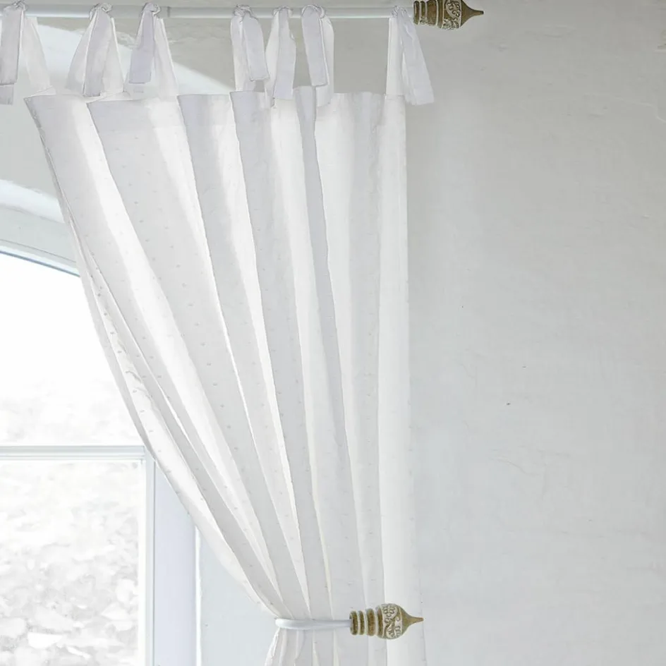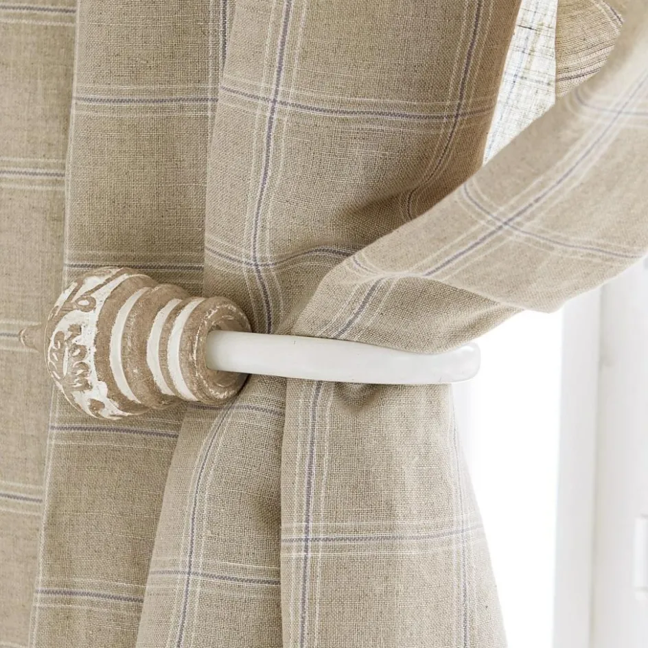 Das stabile Set besteht aus zwei Vorhanghaltern aus Eisen – die hölzernen Abschlüsse wurden aufwändig gedrechselt und mit einem cremefarbenen Vintage-Finish versehen. Die floralen Ornamente sind in Handarbeit entstanden und machen jedes Stück zu einem echten Unikat. Das Design der Vorhanghalter lässt sich mühelos mit verschiedenen Einrichtungsstilen ergänzen. Unser Tipp: Kombinieren Sie das 2er Set zur passenden Vorhangstange im gleich Stil.