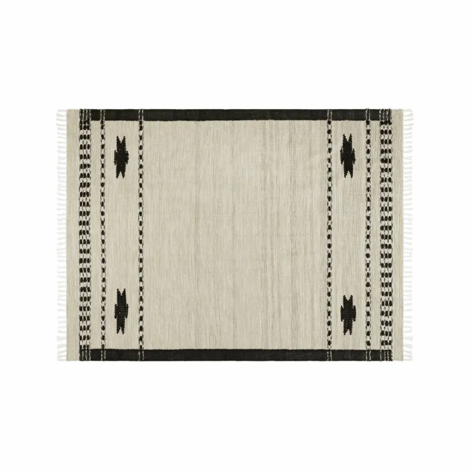 Dieser kunstvoll von Hand gewebte Teppich verbindet umweltbewusste Materialwahl mit eleganter Ästhetik. Aus recyceltem PET gefertigt, bietet er die Haptik eines traditionellen Baumwollteppichs und hält gleichzeitig den Elementen stand. Die naturnahen Farben und das dezente Muster komplementieren sowohl Innenräume als auch Außenbereiche und verleihen ihnen eine entspannte, bohèmeartige Ausstrahlung. Dieser Teppich ist ein Statement für umweltfreundliches Design und vielseitigen Stil, ideal für alle, die Wert auf Nachhaltigkeit und Eleganz legen.