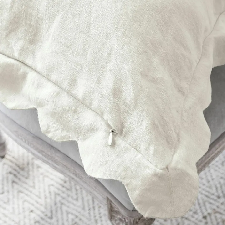 Schlicht im Design und dennoch voller Romantik – dieses Kissenhüllen-Set weckt schon beim Anblick nostalgische Gefühle. Die gebogte Saumkante rundum setzt den schmückenden Akzent, das lebendig strukturierte Leinengewebe verleiht natürlichen Komfort und eine angenehme Haptik. Und damit auch das Beziehen schnell von der Hand geht, sind die Bezüge mit einem praktischen Reißverschluss ausgestattet. Als Duo aber auch in Einzelstellung sorgen sie für viel Gemütlichkeit in Ihrem Landhaus-Ambiente – ob auf der Eckbank in der Küche, den Stühlen im Esszimmer oder dem Bett im Schlafzimmer.