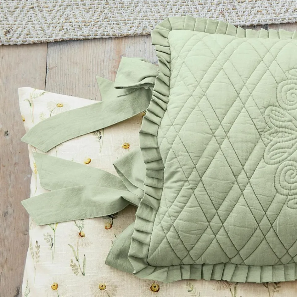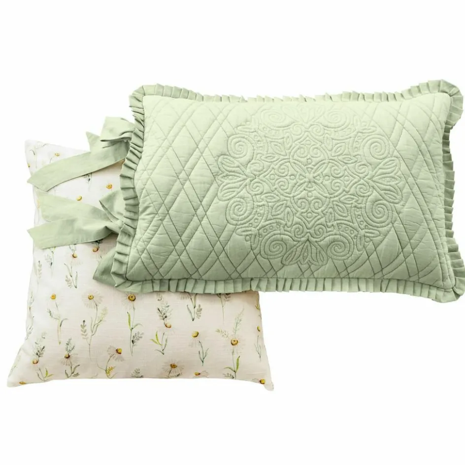 Dieses reizende Duo holt sofort den Frühling in Ihr Zuhause. Die beiden wunderhübschen Designs sind das perfekte Set, denn es treffen süße Gänseblümchen auf romantische Rüschen und eine schöne 3D-Steppung. Beide Kissenhüllen bestehen aus weicher, reiner Baumwolle und sind natürlich für duftige Frische waschbar. Die Hülle mit den Gänseblümchen hat einen Reißverschluss, das gesteppte Design dekorative Bindebänder. Beide eint eine nostalgische Note, wodurch sie ideal zum Shabby-Chic passen. Diese beiden stilvollen Designs sind eine wunderbare Zierde auf dem Sofa oder im Sessel und machen Ihr Heim so richtig gemütlich. Hiermit können Sie sich jederzeit in einen blühenden Frühlingsgarten träumen.
