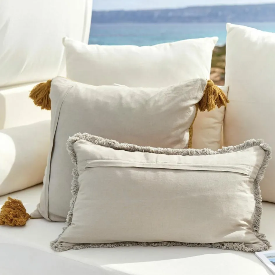 Diese beiden reizenden Kissenhüllen bringen die Sonne in Ihr Heim. Dafür sorgt ihr fröhlicher Farbton, welcher sofort gute Laune macht. Sie versprühen mit den schicken Tasseln und den schmalen Fransen eine Prise Boho-Flair. Die beiden Designs bestehen aus reiner Baumwolle und haben eine angenehm weiche Haptik und auch eine sehr schöne Struktur. Sofa oder Bett werden hiermit charmant verziert, und eine gemütliche Auszeit wird noch schöner. Gestalten Sie mit solch freundlichen Accessoires Ihre wertvolle Freizeit besonders angenehm und adeln Sie ihr Zuhause mit diesen beiden sehr charmanten Designs. Sie sind waschbar und haben je einen Reißverschluss, sodass das Beziehen ganz einfach wird. Das passende Plaid finden Sie unter der Nummer 21974.