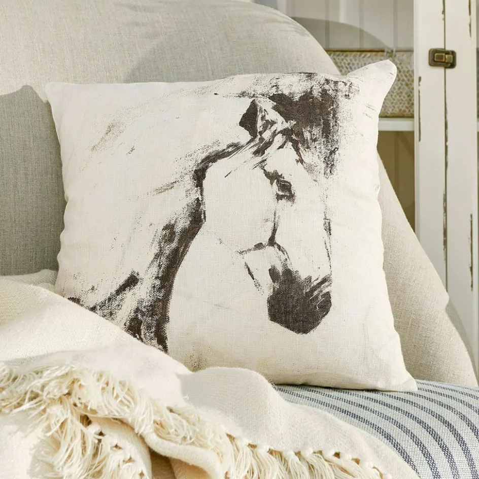 Die Kissenhülle verbindet natürliche Materialien mit kunstvollem Design und schafft so einen faszinierenden Hingucker für jedes Zuhause. Der gewebte Stoff aus Leinen und Baumwolle verleiht ihr eine besonders angenehme Haptik, die sowohl robust als auch komfortabel ist. Der ausdrucksstarke Pferdekopf, in einem skizzenhaften Stil aufgedruckt, zieht die Blicke auf sich und verleiht dem Kissen eine charaktervolle Ausstrahlung. Ob auf dem Sofa, dem Lieblingssessel oder dem Bett – diese Kissenhülle setzt überall einen markanten Akzent und erzählt die Geschichte von Kreativität und natürlicher Schönheit. Die harmonische Kombination aus Stoff und Druck lädt dazu ein, sich zurückzulehnen und die eigene Wohnlandschaft mit einem Hauch von Kunst zu bereichern.