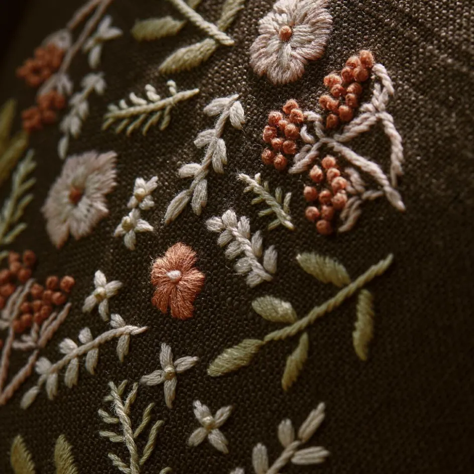 Wie ein Spaziergang über blühende Felder: Diese Kissenhülle vereint rustikale Haptik mit feiner Handwerkskunst. Das kräftige Leinen mit sichtbarer Webstruktur bringt eine angenehme Tiefe in jedes Wohnambiente. Im Mittelpunkt steht die kunstvoll gestickte Blumenranke – filigrane Blüten, kleine Beeren und zarte Blätter wirken wie aufgestickt aus der Natur. Die warme Farbpalette in Creme, Ocker und Terrakotta macht das Kissen zu einem besonderen Blickfang auf Sofa, Sessel oder Bett. Mit einem charmanten Knopfverschluss lässt sich das Inlett ganz einfach austauschen.