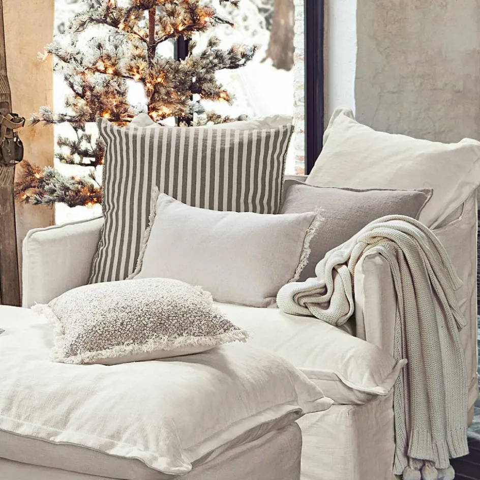 Sie sind meistens klein, spielen bei der Einrichtung von Wohnräumen nicht die Hauptrolle und sind doch oftmals das entscheidende i-Tüpfelchen, damit wir uns in unserem Zuhause richtig wohl fühlen. Bei der Sonntagnachmittag-Lesestunde im Lieblingssessel, beim langen Filmabend auf dem Sofa oder für den kurzen Power Nap zwischendurch. Genau, wir sprechen von Kissen, von denen man nie genug haben kann. Unter dem Kopf, im Rücken, unter den Armen oder an der Seite – jede Freizeitstunde auf dem Sofa bekommt durch ein oder mehrere Kissen erst den optimalen Entspannungseffekt. Deshalb bieten wir Ihnen hier gleich vier Exemplare im Set, von denen jedes ein kleines bisschen anders aussieht und die sich doch zusammen perfekt ergänzen. Allen gemeinsam ist neben der weichen Füllung das hochwertige Bezugsmaterial, das die typisch grobe Webstruktur von reinem Leinen zeigt. Die Kissen im 4er Set unterscheiden sich durch ihre Größe und das Druckdesign. Aber ob mit Melange-Effekt, klassischen Streifen oder Uni, ob mit umlaufendem Keder oder mit Fransen – jedes Kissen im 4er Set eignet sich ebenso gut zum stilvollen Stylen wie für entspannte Stunden. Und wie für Accessoires im gehobenen Landhaus-Stil üblich, wurde auch der praktische Aspekt nicht vergessen. Deshalb hat jeder Kissenbezug einen Reißverschluss und gewaschen werden.