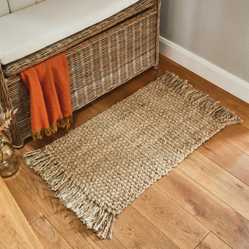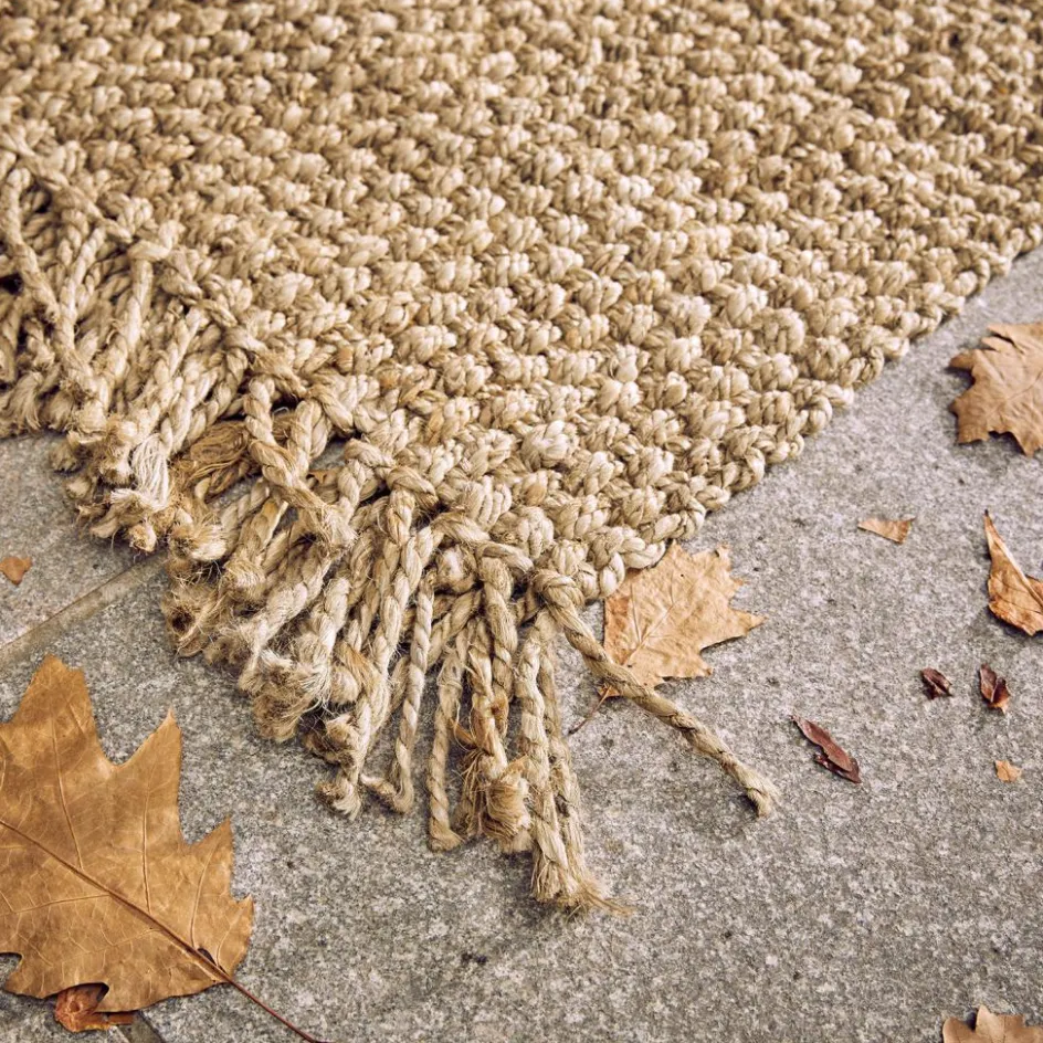 So eine natürlich schöne Fußmatte bekommt man wirklich selten zu Gesicht. Sie wird in traditioneller Handarbeit aus Jutefasern gewebt und weist eine einzigartige Struktur auf. Das grobe Geflecht sieht äußerst stilvoll aus und verschönert Ihren Hauseingang perfekt. Das erdverbundene Design der Jutematte wird von bezaubernden Fransen unterstrichen. Eigentlich ist sie viel zu schön, um sie einfach nur vor der Wohnungstüre zu platzieren. Sie können die Matte auch im Flur nutzen, um beispielsweise die Schuhe Ihrer Gäste darauf zu platzieren. Auch auf der Terrasse lassen sich mit der Matte stylische Akzente setzen. Ein weiteres Plus: Die Handarbeit verleiht jedem Exemplar einen dezenten Unikat-Charakter, welcher jede Matte absolut einzigartig macht.