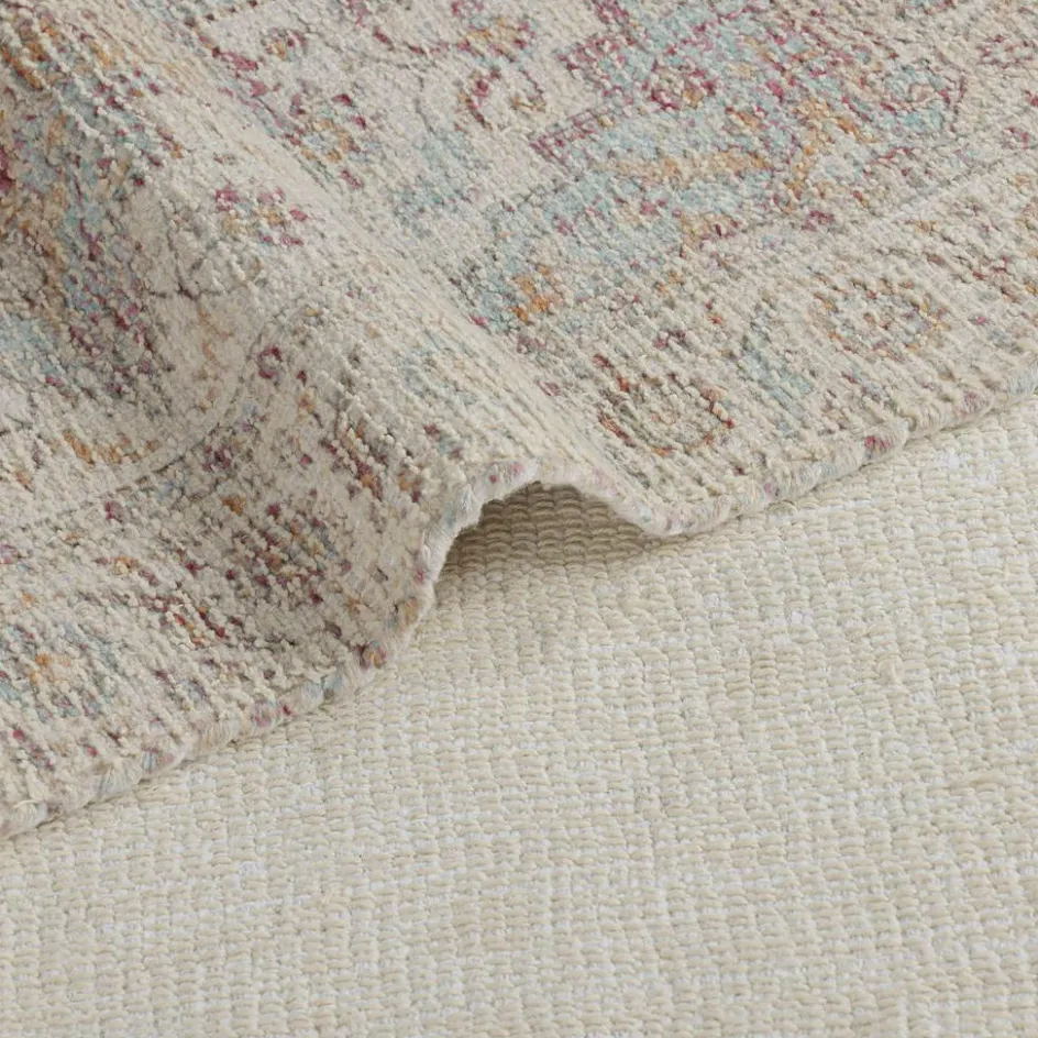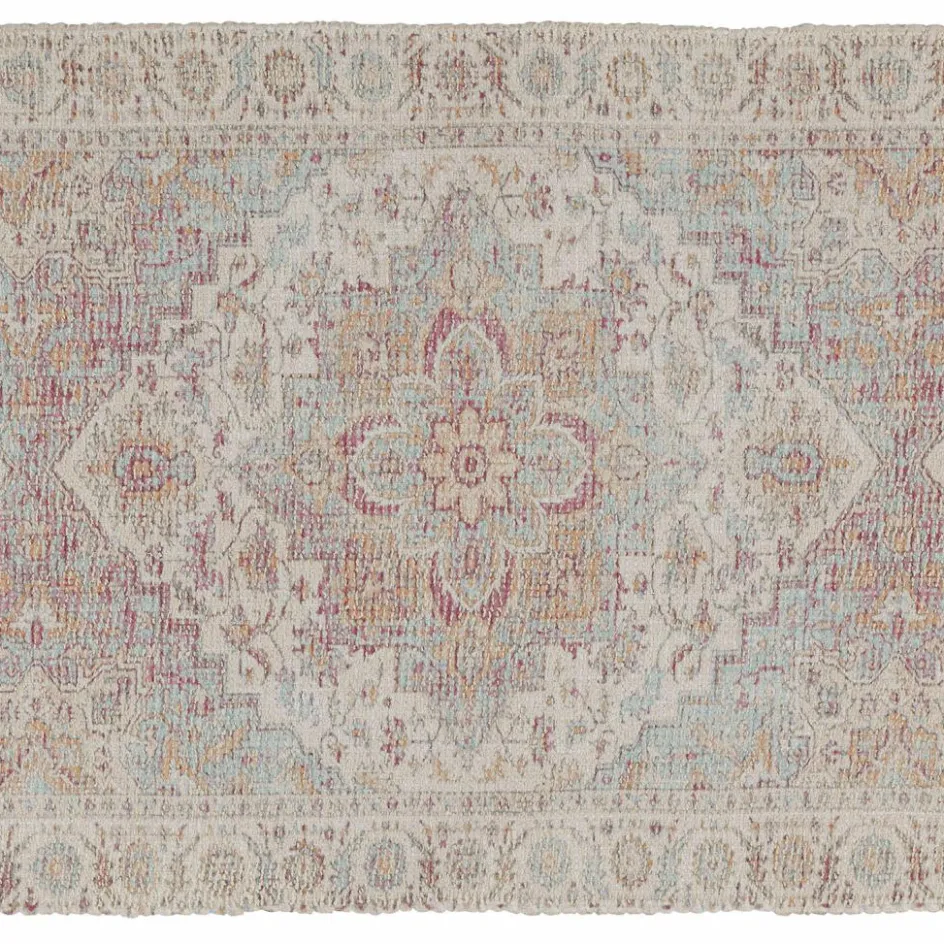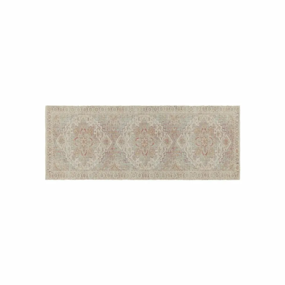Wie ein Hauch aus fernen Ländern legt sich dieser edle Läufer über Ihre Böden. Das aufwendig strukturgewebte Material lässt ein ornamentales Muster entstehen, das wie ein leiser Schatten antiker Orientteppiche wirkt – bewusst weichgezeichnet, wie von der Zeit sanft verblasst. Die melierten Farbnuancen aus Sand, Elfenbein, feinem Lavendel und gedämpftem Rost schaffen eine warme, natürliche Ausstrahlung. Die weiche Oberfläche lädt dazu ein, barfuß darüber zu gleiten, während das lange Format charmant in Szene setzt – etwa als stilvoller Läufer im Eingangsbereich oder als gemütliches Highlight am Bettende.