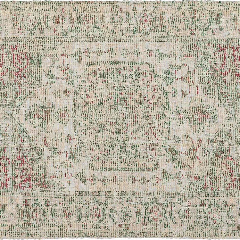 Wie ein poetisches Echo vergangener Zeiten zieht sich das klassische Muster über diesen Teppich. Die Farbtöne sind dezent gehalten, mit feinen Abstufungen von Creme, Altrosa und verwittertem Grün, die gemeinsam ein weiches, fast textilgemaltes Gesamtbild ergeben. Die Oberfläche ist flach gewebt, was ihn besonders angenehm und pflegeleicht macht – ideal auch für stark genutzte Bereiche. Seine Wirkung: subtil und gleichzeitig prägnant. Ein Teppich, der nicht laut sein muss, um Raumwirkung zu entfalten.