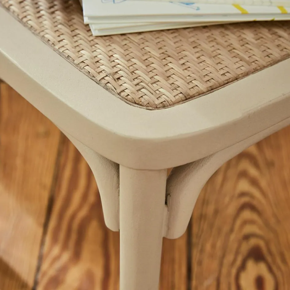 Dieser entzückende Kinderstuhl kombiniert Funktionalität mit einem zeitlosen Landhaus-Stil, der jedes Kinderzimmer bereichert. Der Stuhl zeichnet sich durch einen klassischen Kreuzrahmen im Rücken und eine ansprechende naturfarbene Stuhlflechtrohr-Sitzfläche aus, die nicht nur ästhetisch ansprechend, sondern auch besonders robust ist. Sorgfältig in einem neutralen Farbton lackiert, ist dieser Stuhl so gestaltet, dass er die Proportionen von Kindern perfekt unterstützt und sich ideal für Aktivitäten oder Mahlzeiten eignet. Ob beim Lernen, Spielen oder Essen, dieser Stuhl bietet den kleinsten Familienmitgliedern stets einen sicheren und bequemen Platz.