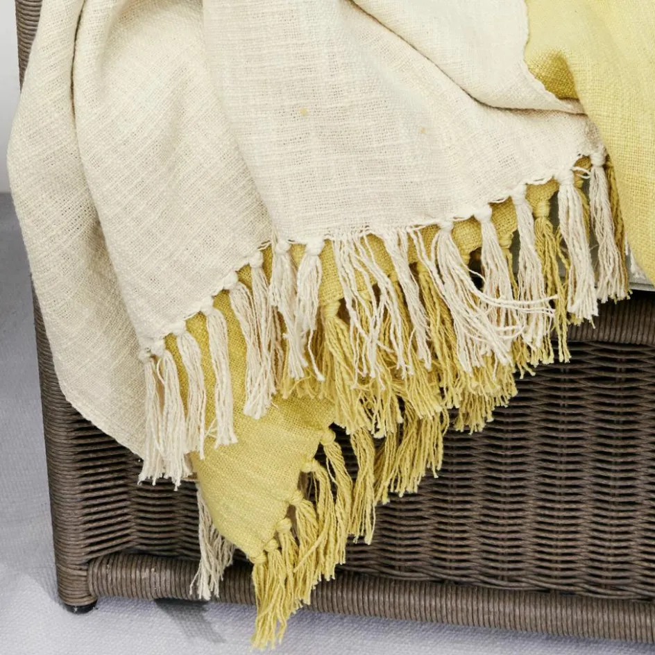 Wohnaccessoires, die die eigenen Vorstellungen erfüllen, sind entscheidend für das persönliche Wohlgefühl. Mit diesem Plaid schenken Sie Ihrer Einrichtung nicht nur eine Extraprise Behaglichkeit, sondern auch eine charaktervolle Note. Der effektvolle Farbverlauf spielt die Hauptrolle in dieser Inszenierung und zeigt sich auf beiden Seiten gleichermaßen schön. Dabei lassen zwei aufeinander abgestimmte Farbtöne das ganz individuelle Bild entstehen. Das natürliche Baumwollgewebe verleiht die lebendige Grobstruktur und verspricht besten Komfort. So liegt die Decke sympathisch weich auf der Haut und sorgt durch ihre Atmungsaktivität für ein angenehmes Körperklima. Gleichzeitig ist sie dünn und leicht und damit für jede Gelegenheit perfekt. Was gibt es also Schöneres, als sich in das Plaid einzuhüllen und entspannte Stunden auf der Couch oder Terrassenlounge zu genießen. Selbst im Urlaub müssen Sie auf das Webplaid nicht verzichten, denn es findet auch in Ihrem Koffer noch Platz.