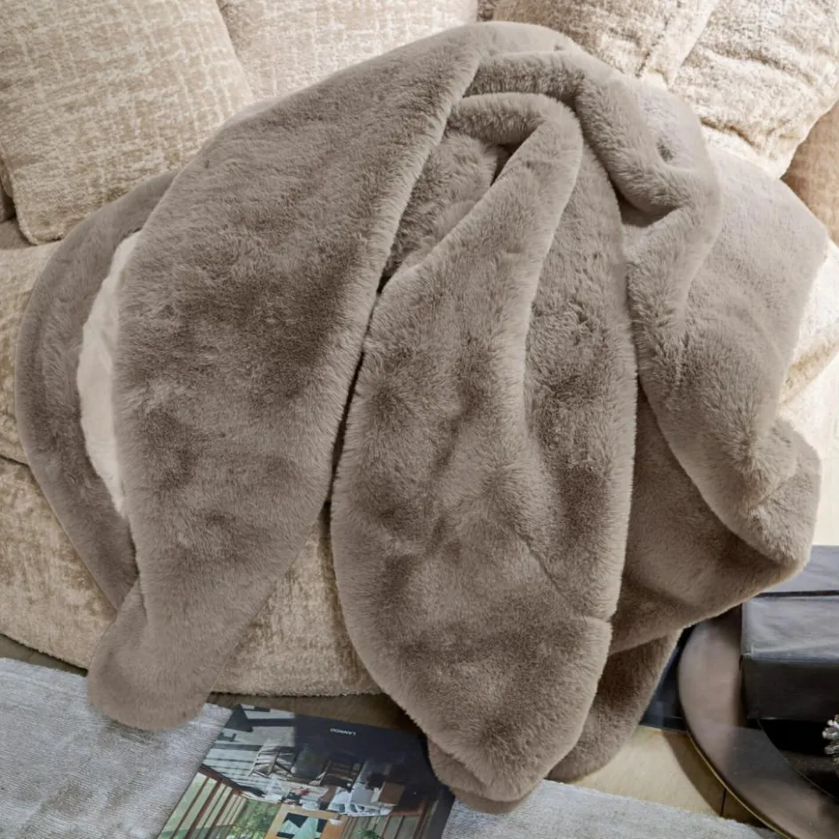Ein Hauch von Luxus für Ihr Zuhause: Diese atemberaubende Decke imitiert die zarte Flauschigkeit echten Fells, ohne dabei auf Nachhaltigkeit und Tierwohl zu verzichten. Ihre äußere Seite besticht durch eine unglaublich weiche und flauschige Oberfläche, die zum Einkuscheln einlädt. Die Rückseite hingegen bietet eine sanfte, glatte Textur, die weniger Fell-Optik, aber ebenso viel Komfort bietet. Perfekt, um kalte Winterabende in behaglicher Wärme zu verbringen oder als dekoratives Highlight auf Ihrem Sofa oder Bett zu dienen. Dieses Plaid ist nicht nur ein praktisches Accessoire, sondern auch ein stilvolles Statement für Ihr Zuhause.
