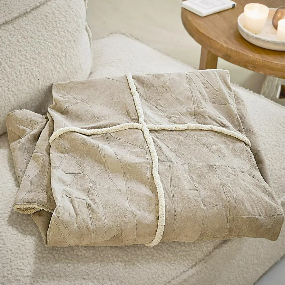 Ein Plaid, das Geschichten erzählt: Aus zahlreichen Lederstücken in zarten Naturnuancen wurde auf der Vorderseite ein kunstvolles Patchwork gefertigt – jedes einzelne Element trägt seine eigene Handschrift und verleiht der Decke ihren einzigartigen Charakter. Die natürliche Oberfläche des Leders fühlt sich angenehm griffig an und bringt Wärme in jede Einrichtung. Die Rückseite überrascht mit einem sanften Teddyfell aus Baumwolle, das sich wohlig weich an die Haut schmiegt. Diese außergewöhnliche Kombination macht das Plaid nicht nur zu einem gemütlichen Begleiter an kühlen Tagen, sondern auch zu einem stilvollen Wohnaccessoire mit Charme und Tiefe.