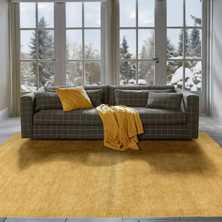 Tauchen Sie ein in die natürliche Schönheit dieses handgewebten Teppichs aus reiner Wolle. Seine warmen, goldgelben Farbtöne bringen Wärme und Behaglichkeit in jeden Raum und lassen sich wunderbar mit verschiedenen Einrichtungsstilen kombinieren. Die handgewebte Struktur verleiht dem Teppich eine weiche und robuste Textur, während die sorgfältig ausgewählten Materialien für Langlebigkeit und Widerstandsfähigkeit sorgen. Dieser Teppich schafft eine gemütliche und stilvolle Atmosphäre und eignet sich perfekt, um in Wohnzimmer, Schlafzimmer oder Büro ein elegantes Highlight zu setzen. Durch seine zeitlose Farbgebung und das zurückhaltende Design passt er sich harmonisch in jede Umgebung ein.