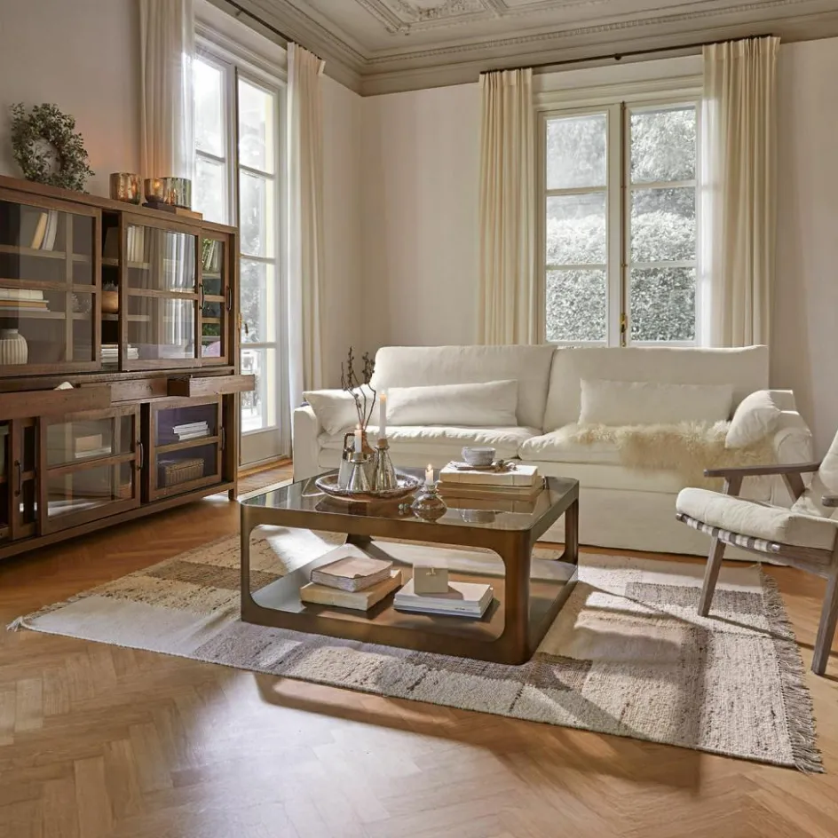 Ein Teppich, der mehr kann als nur gut aussehen: Mit seinem dezent natürlichen Farbspiel aus Creme, Beige und Grau sowie spannenden Webdetails setzt dieser Bodenschmuck auf das Spiel von Struktur und Textur. Verschieden gewebte Segmente erzeugen subtile Kontraste – mal etwas gröber, mal glatter, mal kuschelig mit Wollanteil. Die sanften Unregelmäßigkeiten wirken wie von Hand gefertigt und verleihen dem Teppich Charakter. Dank des flachen Gewebes lässt er sich hervorragend in verschiedenste Wohnstile integrieren – ob modern, skandinavisch oder rustikal. Gleichzeitig schenkt der weiche Wollanteil spürbare Wärme – perfekt für ein wohliges Wohngefühl unter den Füßen.