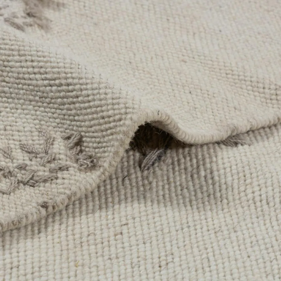 Ein Teppich, der nicht nur Komfort, sondern auch handwerkliche Schönheit in Ihr Zuhause bringt. Gefertigt aus einer weichen Wollmischung bietet er ein luxuriöses Gefühl unter den Füßen und besticht durch seine feine, flach gewebte Struktur. Das charmante, handbestickte Blattmuster fügt einen Hauch von Naturverbundenheit hinzu und lässt sich mühelos in unterschiedliche Einrichtungsstile integrieren. Mit seinen dezenten Farben und dem traditionellen Handwerk sorgt dieser Teppich für ein wohliges Ambiente in jedem Raum.