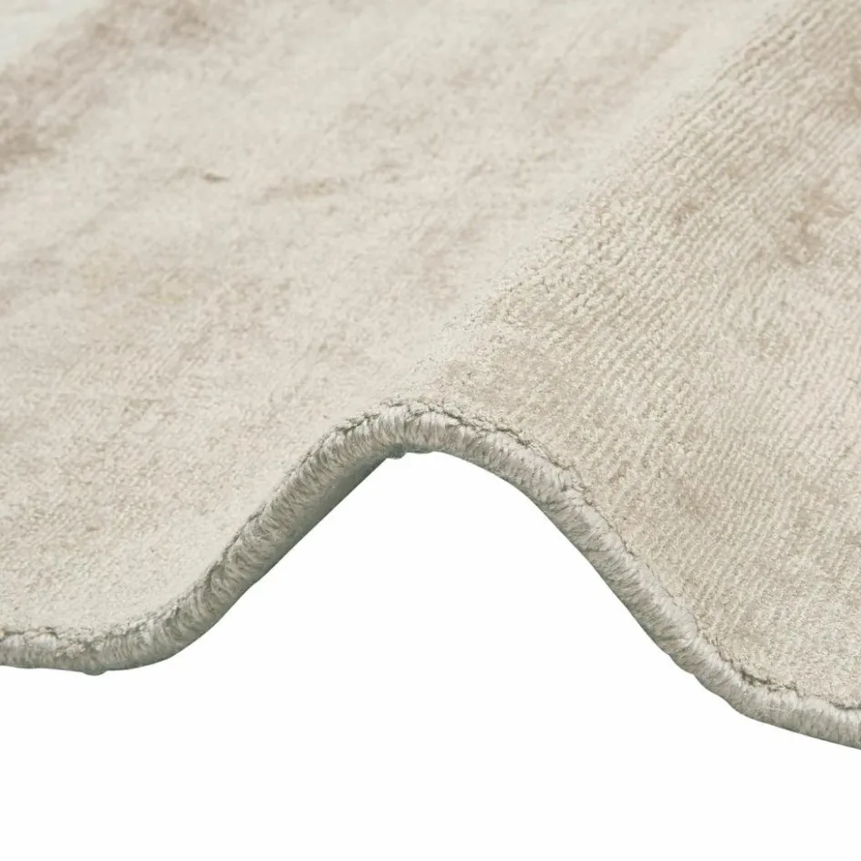 In der Regel ist der Teppich nicht das Erste, was man beim Betreten eines Raumes bemerkt, ohne dieses Wohn-Accessoire aber würde das entscheidende i-Tüpfelchen an Behaglichkeit fehlen. Mit seinem warmen Natur-Beige und den dezenten Melange-Effekten drängt sich dieser Teppich optisch nicht in den Vordergrund und doch ist er in der Lage, dem Raum Charakter zu geben. Dafür sorgt auch die lebendige Textur, die in dem bewährten Material-Duo aus Viskose und Baumwolle ganz traditionell am Handwebstuhl entstanden ist. Die dezent schimmernde Viskose auf der Vorderseite fühlt sich wunderbar weich und behaglich an und lädt so zum Barfußlaufen ein. Der Teppich verwöhnt aber nicht nur mit einer angenehmen Haptik, er reguliert auch die Feuchtigkeit im Raum und sorgt so für ein angenehmes Raumklima. Ein Teppich von zeitloser Eleganz, der jedes Ambiente stilvoll abrundet.