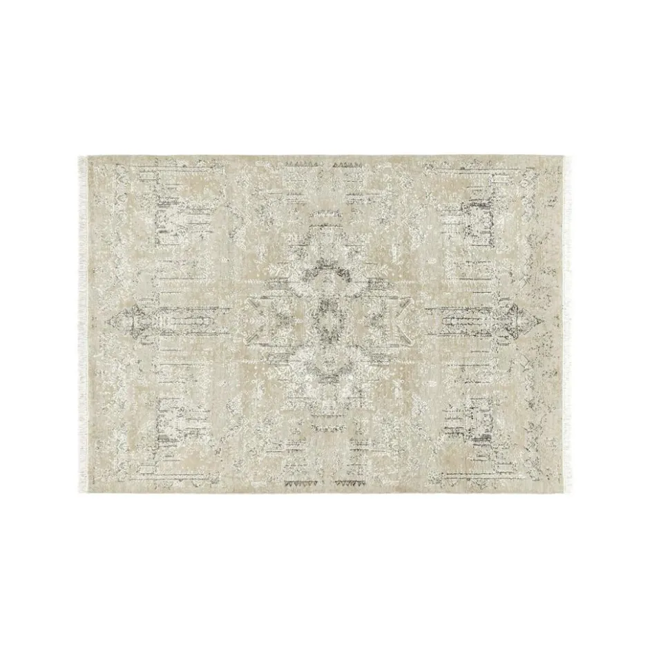 Mit diesem Teppich holen Sie sich ein Stück zeitlose Handwerkskunst nach Hause. Jeder Knoten erzählt von der Sorgfalt und Hingabe, mit der das kunstvolle orientalische Muster geschaffen wurde. Die sanften Sand- und Beigetöne lassen den Teppich wunderbar natürlich wirken und sorgen dafür, dass er sich mühelos in verschiedene Einrichtungsstile einfügt – sei es als ruhiger Akzent in einem modernen Ambiente oder als harmonische Ergänzung zu klassischen Möbeln. Besonders die weiche, flauschige Oberfläche lädt dazu ein, den Alltag für einen Moment hinter sich zu lassen und die Füße tief ins Gewebe sinken zu lassen. Mit seinen feinen Fransen und der authentischen Struktur setzt dieser Teppich ein stimmungsvolles Zeichen für Stil und Gemütlichkeit.