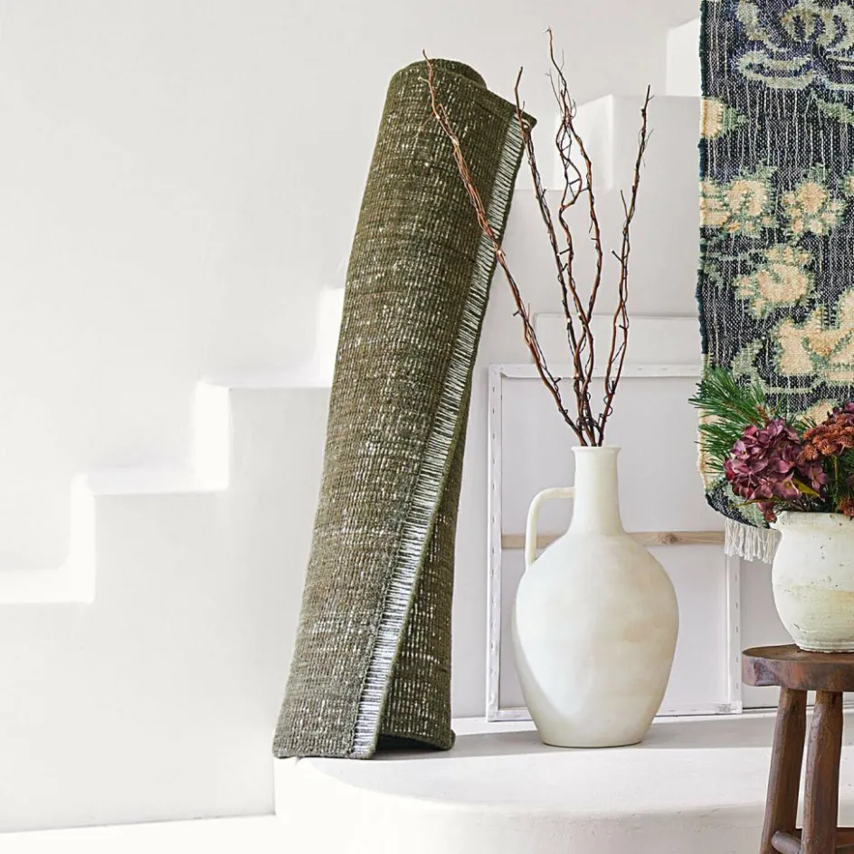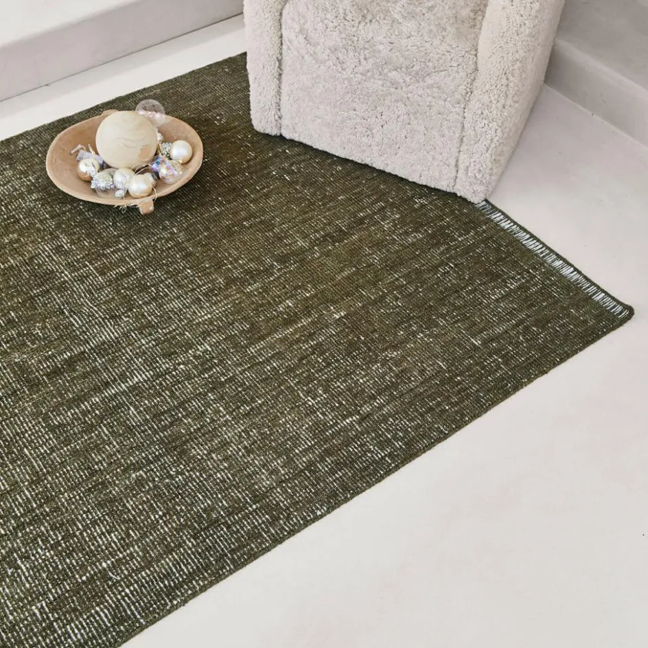 Dieser Teppich zieht leise die Blicke auf sich – mit einer Optik, die Wärme und Tiefe ausstrahlt. Das zart melierte Olivgrün, durchzogen von feinen, cremefarbenen Akzenten, erinnert an natürlich verwitterte Texturen. Handgewebt mit einem hohen Anteil an weicher Wolle, schenkt er nicht nur optisch Behaglichkeit, sondern auch ein angenehmes Laufgefühl. Die dezente Webstruktur verleiht ihm eine lebendige Oberfläche, die sich in jedes Wohnambiente einfügt – vom modernen Landhaus bis zum urbanen Loft. Ein Teppich, der Ruhe ausstrahlt und mit seiner zeitlosen Schönheit lange Freude bereitet.