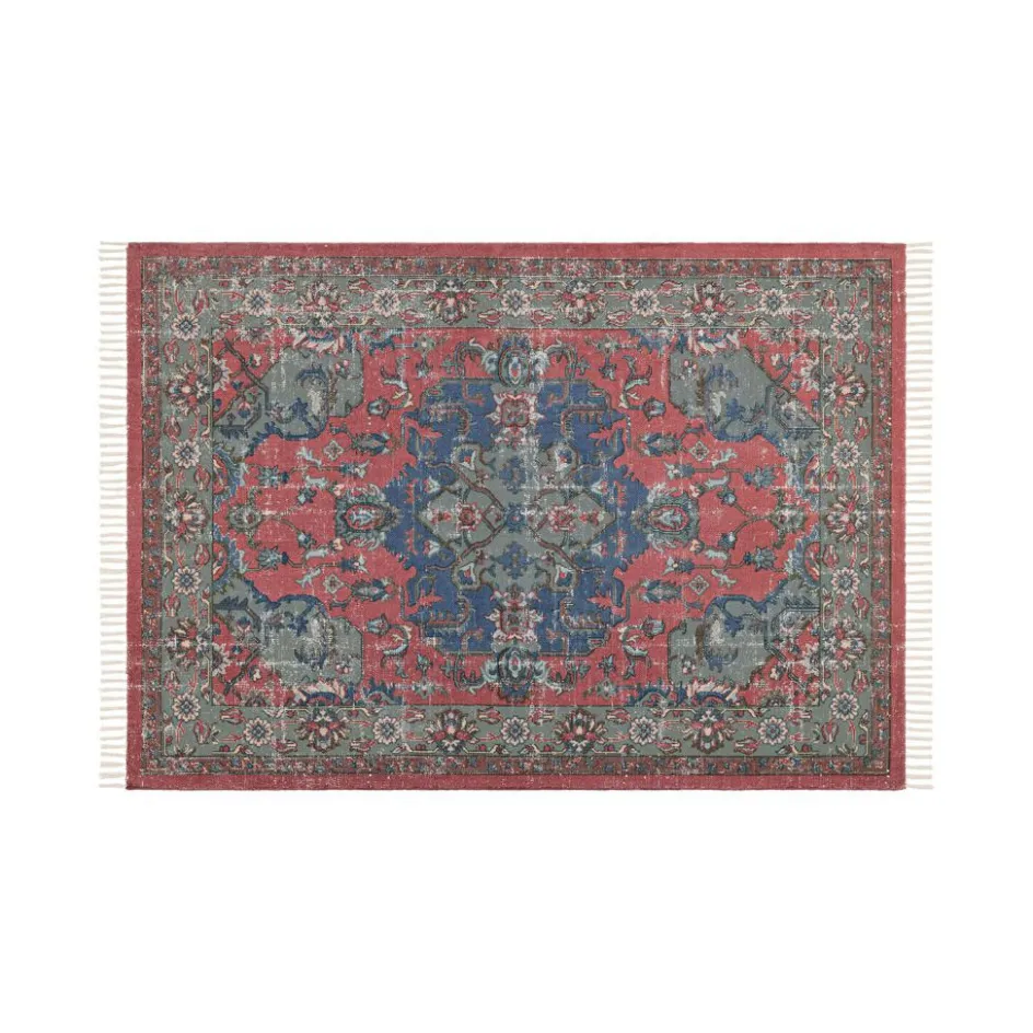 Holen Sie sich ein besonders exotisches Flair nach Hause und verwandeln Sie Ihre Räume in eine verzauberte Wohlfühl-Oase: Märchen von Wunderlampen, mit Gold gefüllte Höhlen, Kalifen in Palästen und reich verzierten Bädern – wie aus Tausendundeiner Nacht entschwebt wirkt dieses romantische Schmuckstück im Vintage-Stil. Der Orient-Look wird von den Ornamenten unterstrichen, die auf die Oberseite gedruckt sind. Der historische Stil und die zeitlosen Ornamente verleihen ihm den besonderen Charme einer wertvollen Antiquität. Der Teppich besteht ganz aus Baumwolle, ist dünn gewebt und wunderbar weich. Auf diese Weise sorgt er für ein angenehmes Gefühl an den Fußsohlen. Muss er gereinigt werden, empfehlen wir eine professionelle Reinigung. Bei guter Pflege fühlen Sie sich für lange Zeit wie in einem Märchen mit der Magie aus Fernost.
