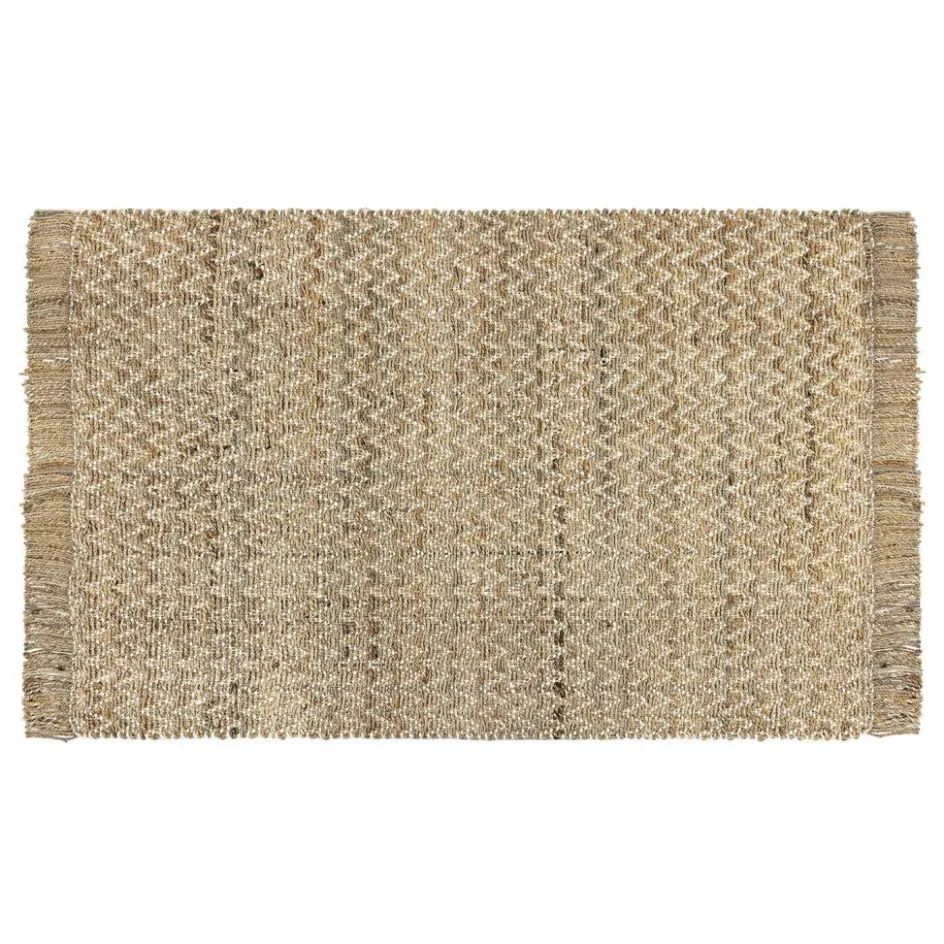 Wer einen Teppich aus Naturfasern sucht, der außerdem so schnell nichts übelnimmt und auch in viel frequentierten Bereichen der Wohnung für wohnliches Flair sorgt, trifft mit einem Juteteppich die beste Wahl. Denn Jute ist die stärkste und haltbarste Naturfaser, die sich außerdem durch einen sanften Glanz auszeichnet, weshalb sie oft als „goldene Faser“ bezeichnet wird. Für diesen Teppich wurde die extrem robuste, reißfeste Jute mit wärmender, atmungsaktiver Wolle kombiniert, die für die angenehme Haptik und die anheimelnde Note sorgt. Mit dem klassischen Zickzackmuster und den dezenten Naturtönen fügt sich der Teppich in die verschiedensten Interieurs und bildet im Wohnraum wie im Flur oder der großzügigen Landhausküche einen stilvollen Blickfang. Traditionell von Hand gewebt und mit Fransen an den kurzen Seiten versehen.
