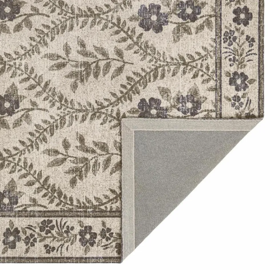 Dieser Teppich ist mehr als nur ein Bodenbelag – er bringt die Anmut eines blühenden Gartens in den Wohnraum. Die floralen Motive wirken wie handgezeichnet, umrahmt von einem zarten Bordürenmuster, das dem Design eine klassische Note verleiht. Die gedeckten Farben scheinen mit Licht und Schatten zu spielen, was dem Teppich trotz seiner ruhigen Farbgebung Tiefe und Lebendigkeit schenkt. Die gewebte Oberfläche fühlt sich angenehm fest an und sorgt für ein gemütliches Raumgefühl – ob im Wohnzimmer, unter dem Esstisch oder im Schlafzimmer. Ein Teppich für alle, die das Gefühl von Natur, Stil und Geborgenheit vereinen möchten.