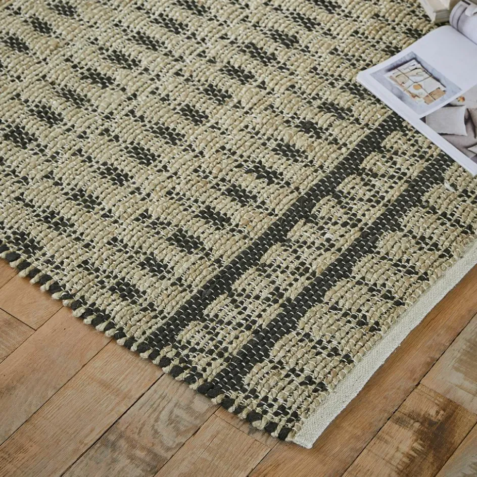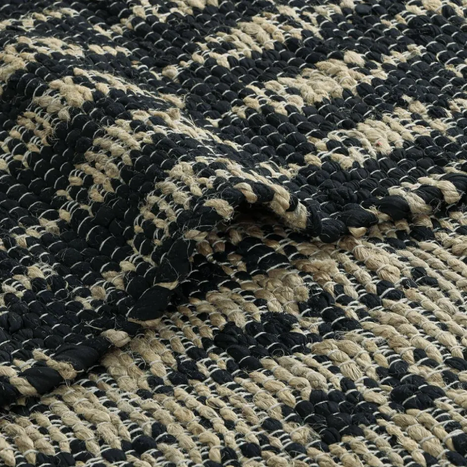 Der handgewebte Teppich aus einer hochwertigen Mischung aus Jute und Baumwolle besticht durch sein einzigartiges Design und die natürliche Farbgebung. Die flache Webart und das markante, kontrastreiche Muster in Schwarz und Naturtönen verleihen diesem Teppich eine zeitlose Eleganz, die sich in jedes Interieur einfügt. Jede Faser wurde sorgfältig verarbeitet, um nicht nur eine ansprechende Optik, sondern auch eine angenehme Haptik zu gewährleisten. Perfekt für Flure, Küchen oder Wohnzimmer, bringt dieser Teppich Wärme und Struktur in Ihr Zuhause und schafft eine einladende Atmosphäre.