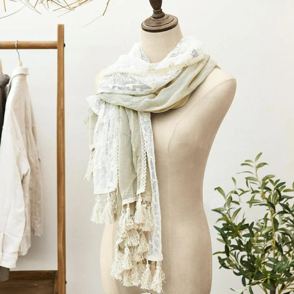 Ein wunderbar leichtes und sehr feminines Accessoire mit romantischer Note. Der zarte Schal besteht aus einem weichen Gewebe aus Viskose und Baumwolle. Er ist großzügig geschnitten, hat einen hübschen Fall und lässt sich wunderbar drapieren. Die feine Blumenstickerei, eine Borte aus Baumwolle sowie die dekorativen Troddeln verleihen ihm eine Extraportion Charme. Ein elegantes modisches Accessoire, welches jedem Look eine ganz eigene Note gibt – ob Jeans oder Sommerkleid. Hiermit sehen Sie gleich noch hübscher aus.