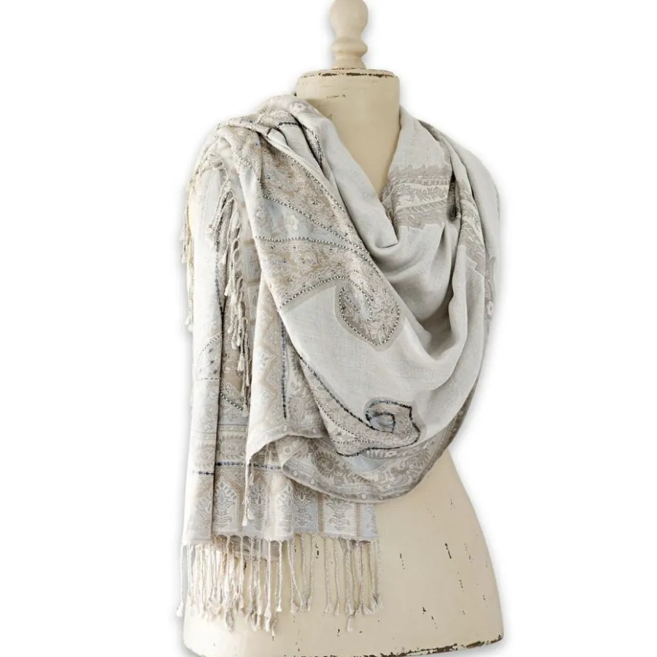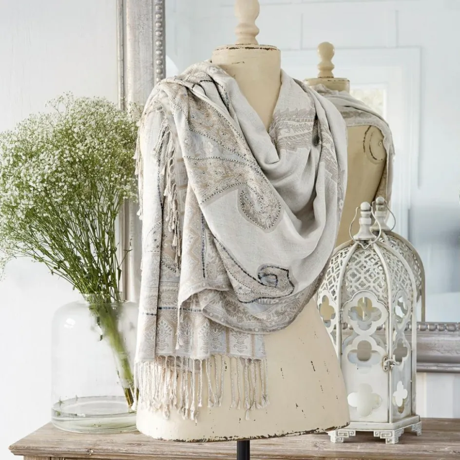 Ein wunderhübsches modisches Accessoire, das zu jedem Outfit ein gekonntes und harmonisches Highlight setzt. Der kunstvoll gearbeitete Schal besteht aus leichter reiner Viskose, die einen besonders hübschen Fall hat und sich sehr gut drapieren lässt. Ein opulentes Paisley-Muster und eine aufwendige Perlenstickerei zieren das feine Gewebe. Prachtvolle Eleganz, die vorzüglich zur neuen Saison passt. Ein echtes Must Have in der Frühjahrsgarderobe, das sehr elegant und geschmackvoll designt ist.