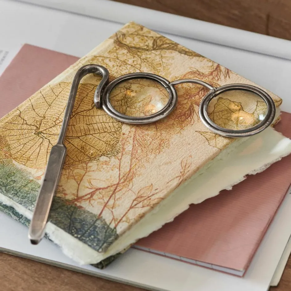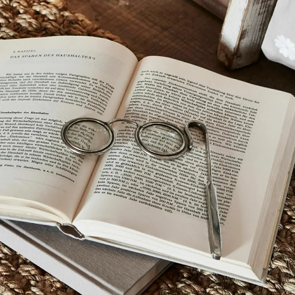Dieses zauberhafte Objekt sprüht nur so vor Charme. Das Design erinnert an Lesehilfen längst vergangener Zeiten. Die nostalgisch anmutende Vintage-Note wirkt sehr authentisch. Doch nicht nur optisch ist das kleine Accessoire ein echtes Highlight auf dem Schreibtisch oder dem Sekretär. Das Lesen von sehr kleingedruckten Texten oder das Betrachten von Briefmarken, Münzen oder Fotos wird durch das Vergrößerungsglas erleichtert. So können auch die kleinsten Schriftzeichen schnell entziffert werden. Und wenn das Helferlein gerade nicht im Gebrauch es, schmeichelt es seinem Umfeld. Das vernickelte Messing hat einen wunderschönen silbrigen Schimmer. Das Design passt toll zu romantischem Interior wie dem Shabby-Chic oder dem Landhaus-Stil. Auch zu klassisch eleganten Möbeln ist es schlichtweg eine Augenweide – und das im wahrsten Sinne des Wortes.