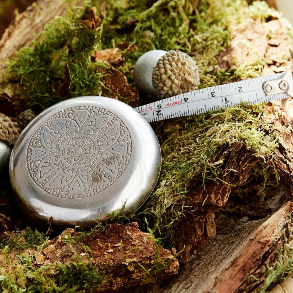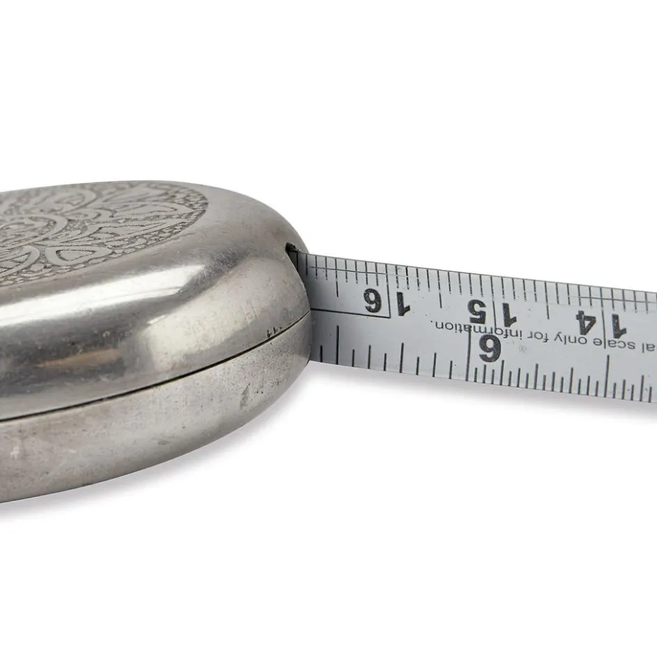 Dieses wunderschöne Stück ist antiken Originalen aus dem goldenen Zeitalter des Schneiderhandwerks nachempfunden. Die alten Meister haben sich solcher Schneidermaßbänder bedient, um ihre stilbildenden Ideen in die Praxis umzusetzen. Das hochwertige Messinggehäuse wird von einer bezaubernden Floralprägung geschmückt. Diese sieht nicht einfach nur hübsch aus, sondern verleiht dem Case auch mehr Griffigkeit, damit es nicht aus der Hand rutscht. Das Band selbst besteht aus einem leichten Metall, das sich mittels Zugfeder bequem ein- und auswickeln lässt. Smartes Detail: Die Maßangaben auf dem insgesamt zwei Meter messenden Bandes zeigt sowohl eine Zentimeter-, als auch eine Zollskala. Dies ist hilfreich, wenn Sie beispielsweise mit amerikanischen Schnittmustern arbeiten und die Maße nicht ständig umrechnen möchten. Übrigens: Dank sehr kompakter Abmessungen ist das Maßband ideal zum Mitnehmen!