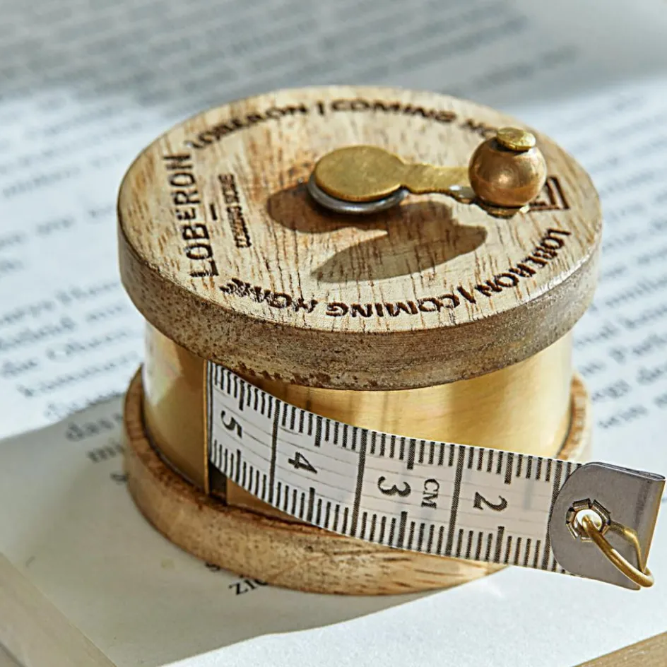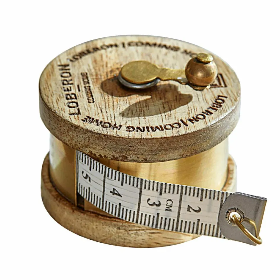 Wie lang wird der Pulli, den Sie sich gerade stricken? Wie groß muss der neue Bezug für Ihre Sofakissen sein? Hat das Geschenk, das Sie wegschicken möchten, noch die Maße eines Päckchens oder ist es schon ein Paket? Nur drei von unzähligen Alltagssituationen, in denen Sie bald zu Ihrem neuen Maßband greifen werden. Natürlich lassen sich manche Dinge auch mit einem Zollstock vermessen, aber wenn es um ausgezeichnete Funktionalität in Verbindung mit einer reizvollen Optik geht, ist das kleine Maßband einem Zollstock haushoch überlegen. Vor allem dieses Maßband hier, das mit der rustikalen Holzspule aus Mangoholz und dem LOBERON-Branding als stilvollem Extra so wunderschön nostalgisch aussieht, dass es nicht in einer Schublade versteckt werden muss. Das Gehäuse ebenso wie die kleine Kurbel sind aus hochwertigem Messing, das Band selbst ist aus strapazierfähigem Nylon.