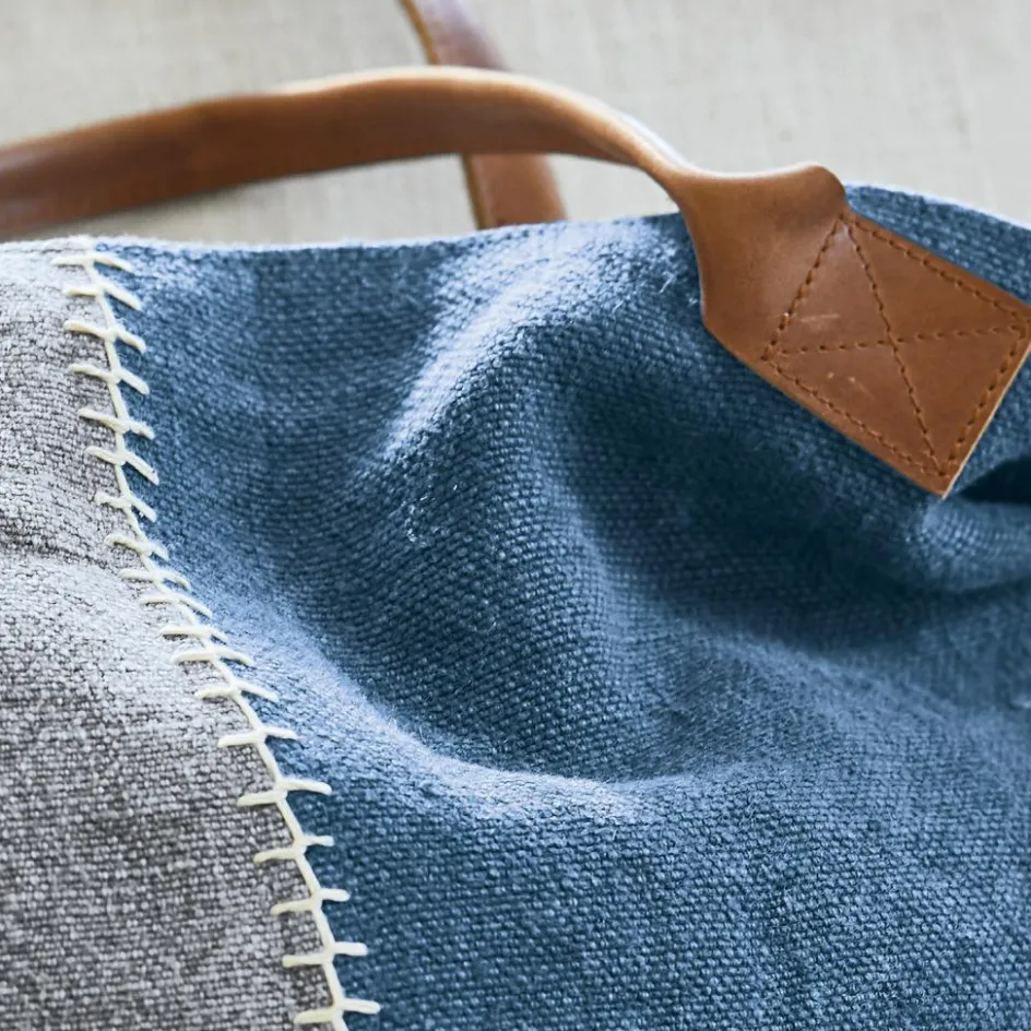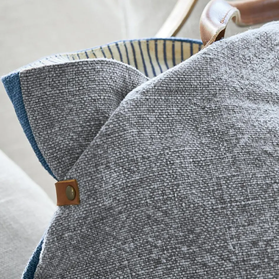 Ganz locker begleitet Sie diese Stofftasche durch den Tag und sieht dabei richtig gut aus: Der graublaue Kontrast ist ein reizvoller Eyecatcher. Genauso wie die helle Ziernaht, die der Tasche aus natürlicher Jute den angesagten Patchwork-Charakter verleiht. Mit einem Druckknopf lässt sich die Tasche schnell verschließen. Die großzügig bemessene Innentasche zeigt sich im Streifenlook und ist aus reiner Baumwolle. Praktisch: Im Innenbereich verbirgt sich ein zusätzliches Fach. Dort finden Autoschlüssel, Parkmünzen oder die Geldbörse ihren Platz. Der großzügig bemessene Innenraum macht die Tasche beim Einkaufsbummel zu einem charmanten Weggefährten. So ist der strapazierfähige Shopper aus robuster Jute auf allen Touren dabei. Besonders tragbar wird die Tasche dank seiner hochwertigen und stabilen Henkel aus Leder. Und falls Sie gerade im Urlaub sind: Einen Strandausflug hat sich das Schmuckstück nach einer ausgedehnten Shoppingtour durchaus verdient. Die Tasche ist auch dort in Top-Form.