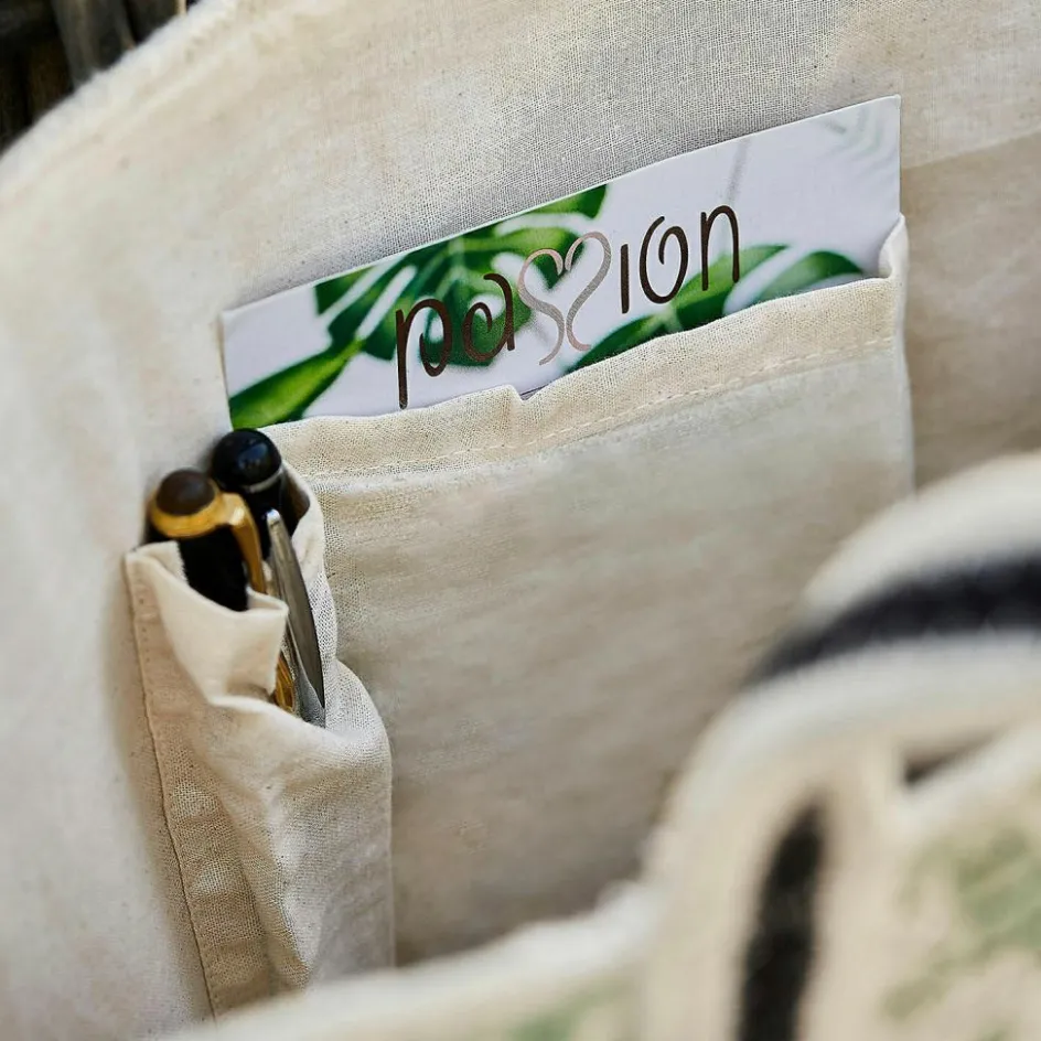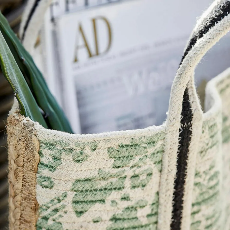 Diese Tasche vereint authentische Materialien mit einer charmanten Optik. Der grob gewebte Jutekörper verleiht ihr eine rustikale Note, die durch den dekorativen grünen Aufdruck auf Baumwolle stilvoll aufgelockert wird. Ideal für den Strand, den Markt oder einen entspannten Stadtbummel – sie ist geräumig und dank der stabilen Tragegriffe angenehm zu tragen. Der Baumwollinnenstoff sorgt für einen harmonischen Abschluss, und die schlichte, naturverbundene Farbgebung fügt sich in viele Stilrichtungen ein.
