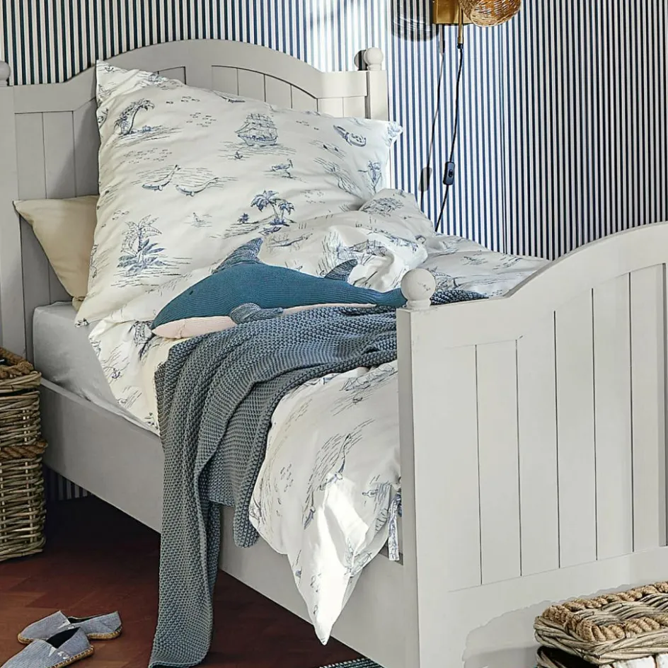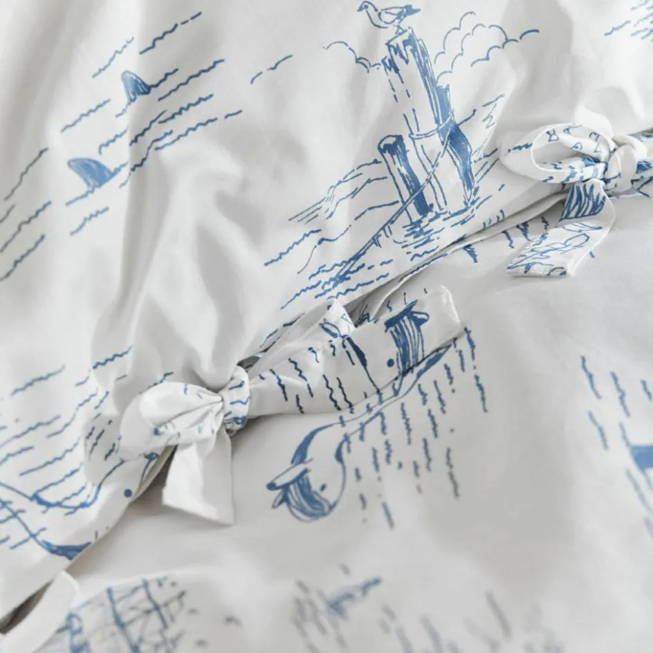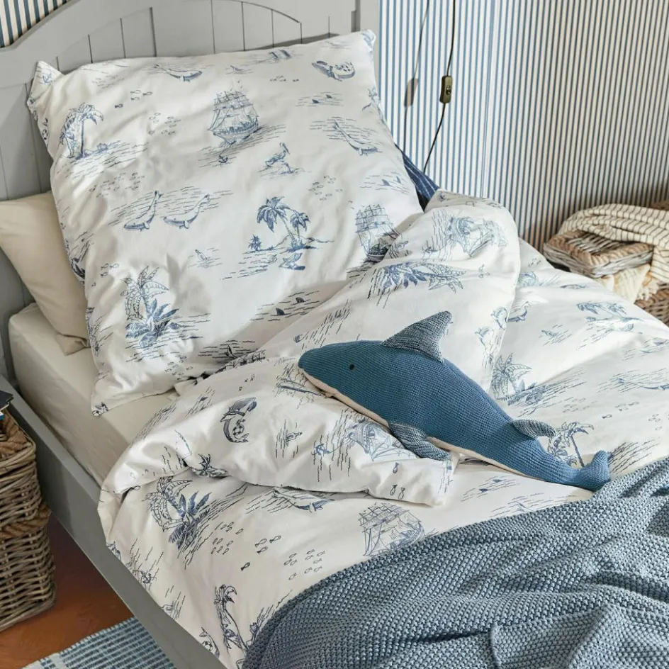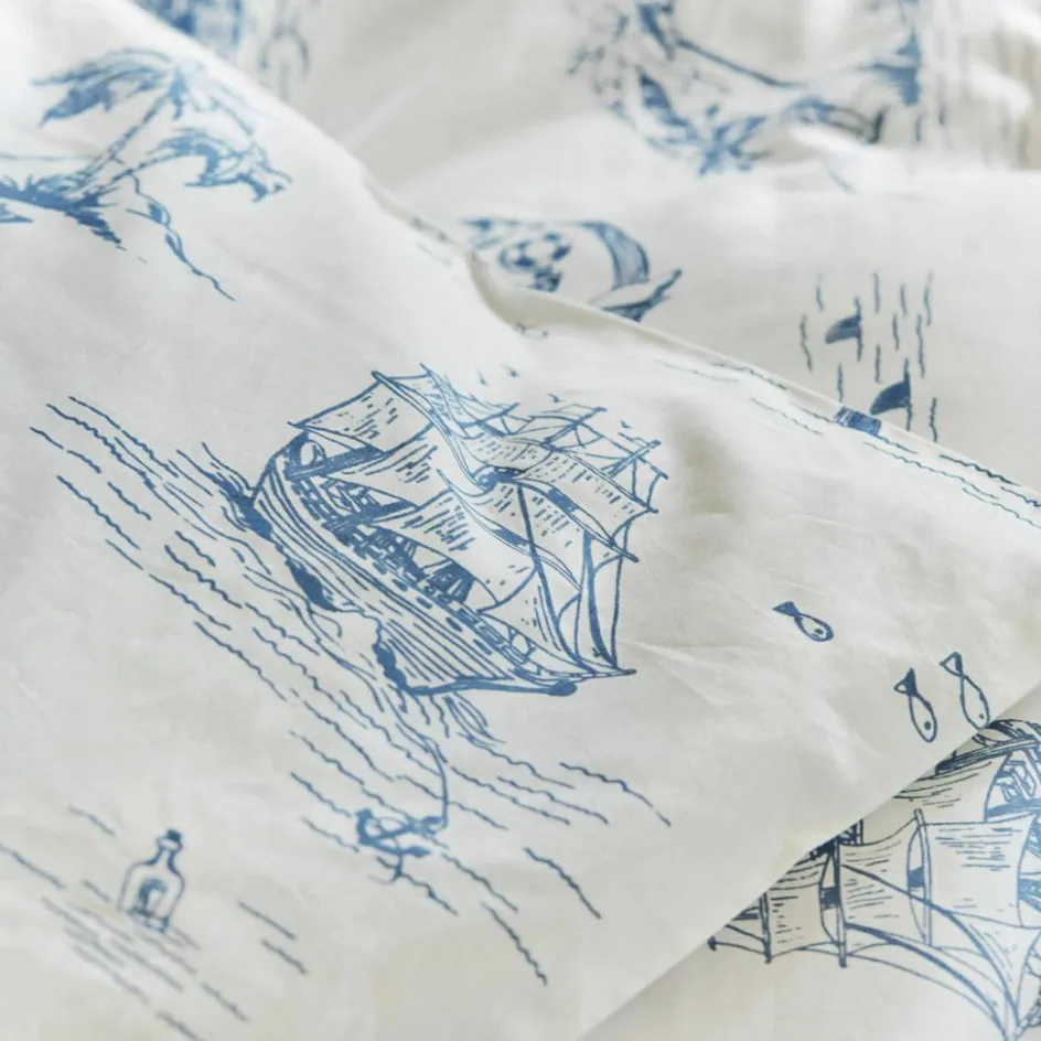 Lassen Sie die Wellen rauschen und den Wind in den Segeln spüren – mit dieser traumhaften Bettwäsche im maritimen Toile-de-Jouy-Design holen Sie sich das Gefühl von endlosen Sommern in Ihr Schlafzimmer oder das Kinder- oder Jugendzimmer. Die weiche, gewebte Baumwolle sorgt für erholsamen Schlaf, während die detailreichen Prints von Segelschiffen, Palmen und Meereswelten die Fantasie anregen. Der klassische Long Island Stil verleiht jedem Raum einen Hauch von Urlaub und Entspannung. Ob für kleine Abenteurer oder maritime Fans, diese Bettwäsche bringt das Meer direkt nach Hause.