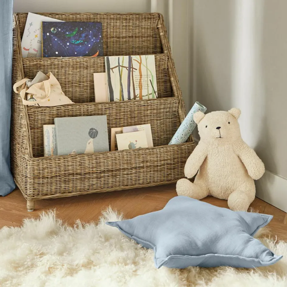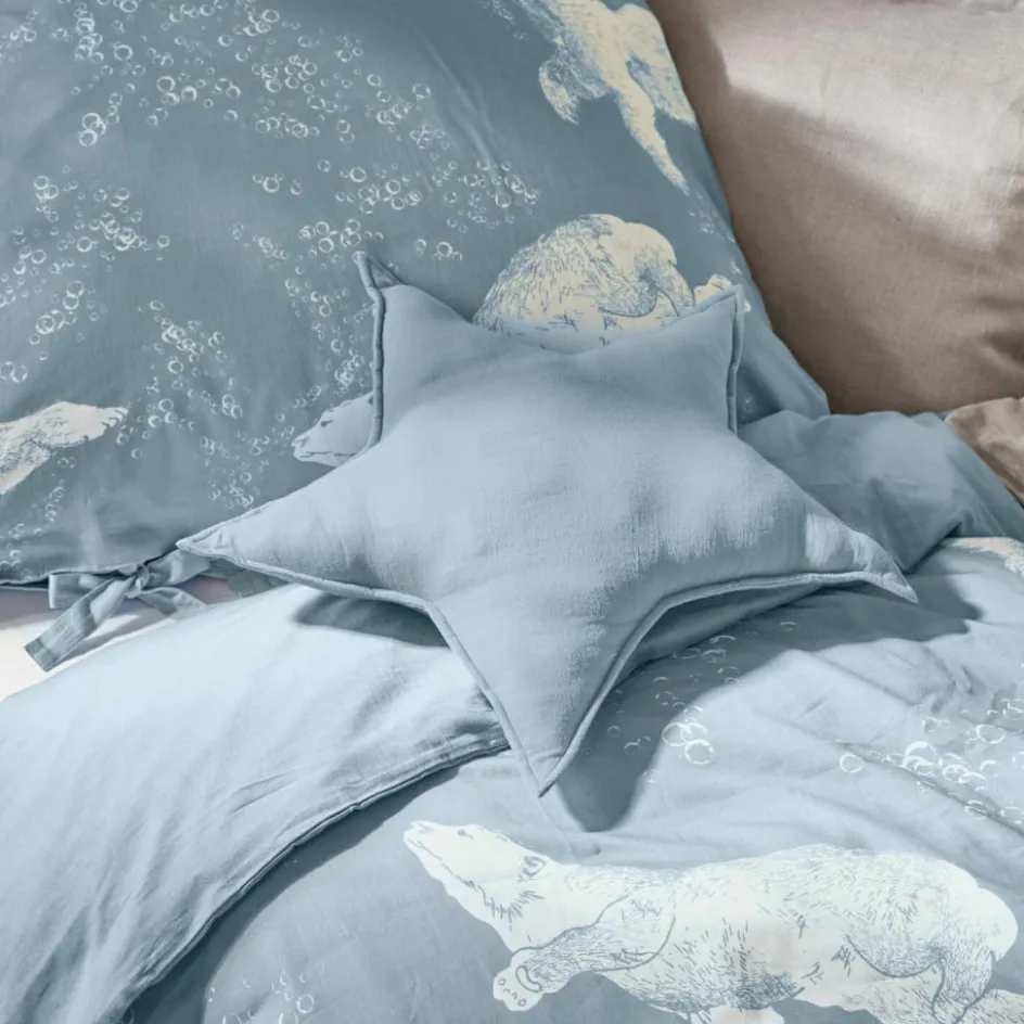 Verleihen Sie dem Kinderzimmer einen Hauch von Magie mit diesem bezaubernden sternförmigen Kissen. In einem zarten Blauton gehalten, bietet es nicht nur optische Freude, sondern auch kuschelige Haptik dank der reinen Baumwolle. Die weiche Textur und die ansprechende Form machen es zum perfekten Begleiter für gemütliche Stunden, fantasievolle Spiele und erholsame Ruhepausen. Dieses Kissen wird schnell zum Lieblingsstück im Kinderzimmer, das Geborgenheit und Träume vereint.