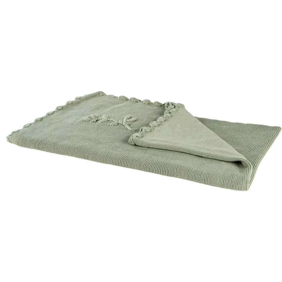 Wie eine sanfte Umarmung legt sich dieses gestrickte Plaid über Bett oder Kuschelecke. Die weiche Baumwollstruktur fühlt sich angenehm auf der Haut an – perfekt zum Zudecken, Spielen oder Ausruhen. Besonders bezaubernd: die aufwendig gehäkelte Bordüre und das zarte, erhabene Stickmuster in einer Ecke, das wie ein liebevoller Blumengruß wirkt. Der zurückhaltende Grünton sorgt für eine ruhige Stimmung im Raum und lässt sich wunderbar mit natürlichen Materialien kombinieren. Ein textiles Schmuckstück, das Wärme und Geborgenheit ausstrahlt.