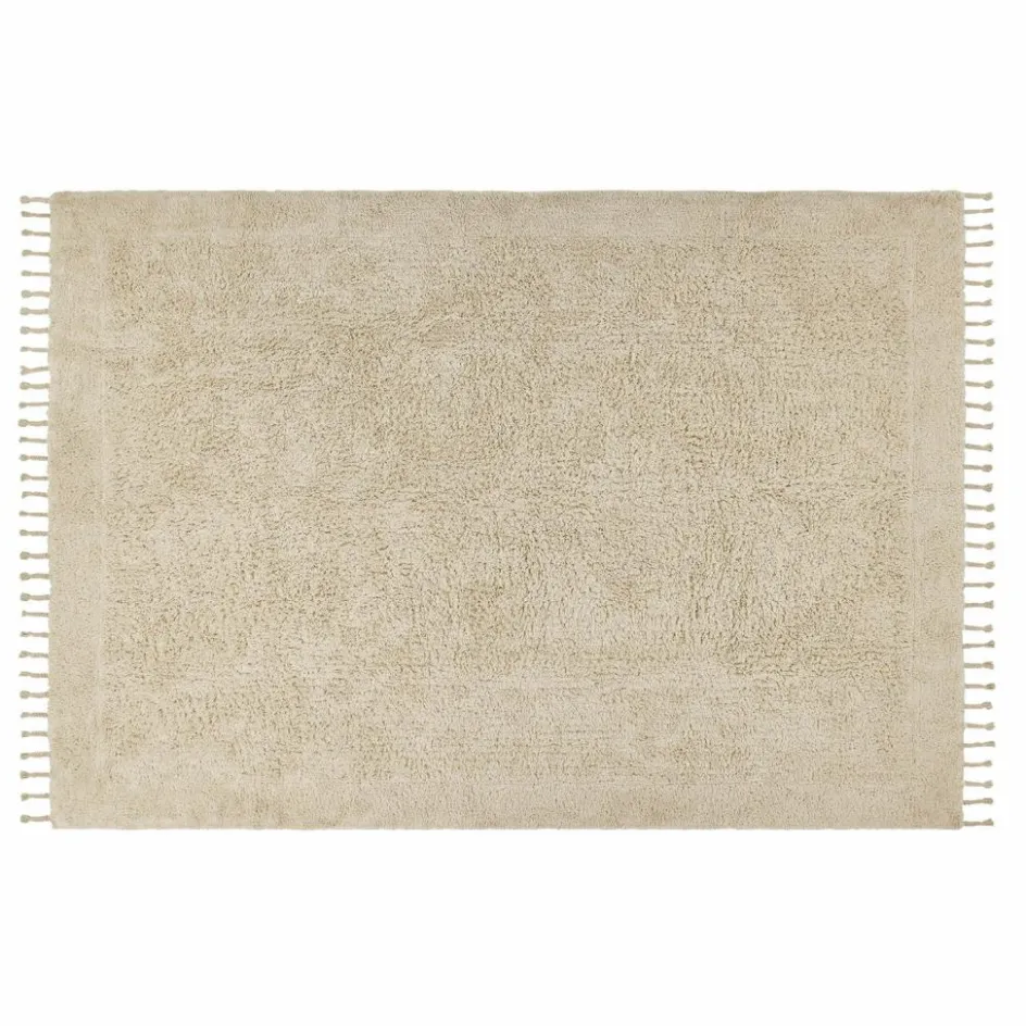 Wer barfuß darüber geht, spürt es sofort: Dieser Teppich ist mehr als nur ein Bodenbelag – er ist ein Gefühl von Zuhause. Die flauschige Hochflor-Struktur lädt zum Verweilen ein und verwandelt selbst kühle Räume in behagliche Wohlfühlzonen. Sein Ton? Ein sanftes Naturcreme, das nicht aufdrängt, sondern harmonisiert. Die fein geknüpften Fransen an den Schmalseiten wirken wie ein liebevolles Finish und erinnern an kunstvolle Textilien aus dem Handwerk. Gefertigt aus reiner Baumwolle bringt er nicht nur eine angenehme Haptik, sondern auch Natürlichkeit und Atmungsaktivität mit. Ob im Schlafzimmer, Wohnzimmer oder Kinderzimmer – dieser Teppich schenkt Wärme und Charakter.