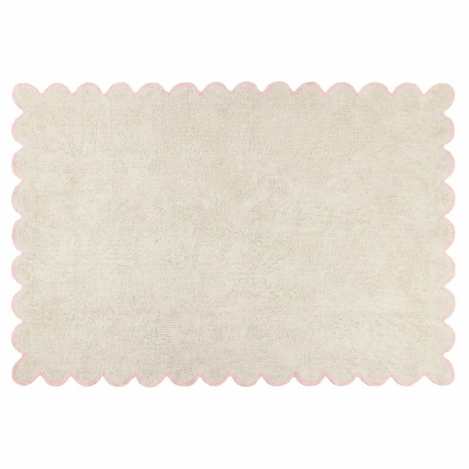 Wie ein sanfter Tritt in ein Wattewölkchen – so fühlt sich dieser bezaubernde Teppich aus reiner Baumwolle an. Seine flauschige, getuftete Oberfläche mit charakteristischer „Shaggy“-Struktur erinnert an feine, lose gekämmte Fasern, die sich beim Barfußlaufen kuschelig an die Haut schmiegen. Ob als Spielunterlage, Leseecke oder Blickfang – der Teppich verleiht dem Kinderzimmer eine warme, beruhigende Atmosphäre. Besonders liebevoll: der gewellte Rand in zartem Rosa, der dem Design eine verspielte Note gibt. Und wenn beim Spielen doch mal etwas daneben geht? Kein Problem – der Teppich ist einfach waschbar und bereit für jedes neue Abenteuer.