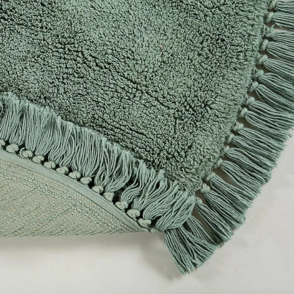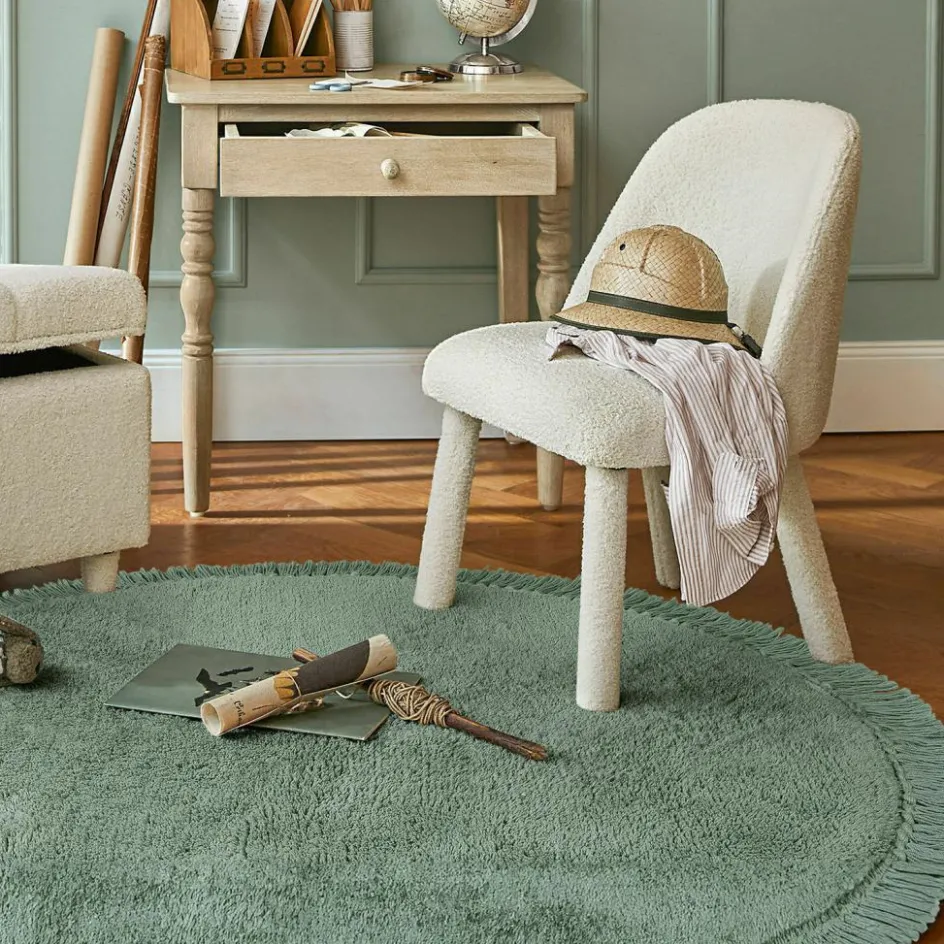 Ein Teppich, der das Herz höher schlagen lässt! Die weiche, getuftete Baumwolle lädt zum Spielen und Kuscheln ein und schafft eine Wohlfühloase, vor allem auch im Kinderzimmer. Mit seiner runden Form und den charmanten Fransen an den Rändern fügt sich der Teppich harmonisch in jede Umgebung ein und sorgt für ein gemütliches Ambiente. Der sanfte, beruhigende Farbton ergänzt jede Kinderzimmerdekoration und lässt den Raum in einer warmen Atmosphäre erstrahlen. Perfekt für kleine Abenteurer, die sich auf einem weichen, komfortablen Untergrund bewegen möchten.