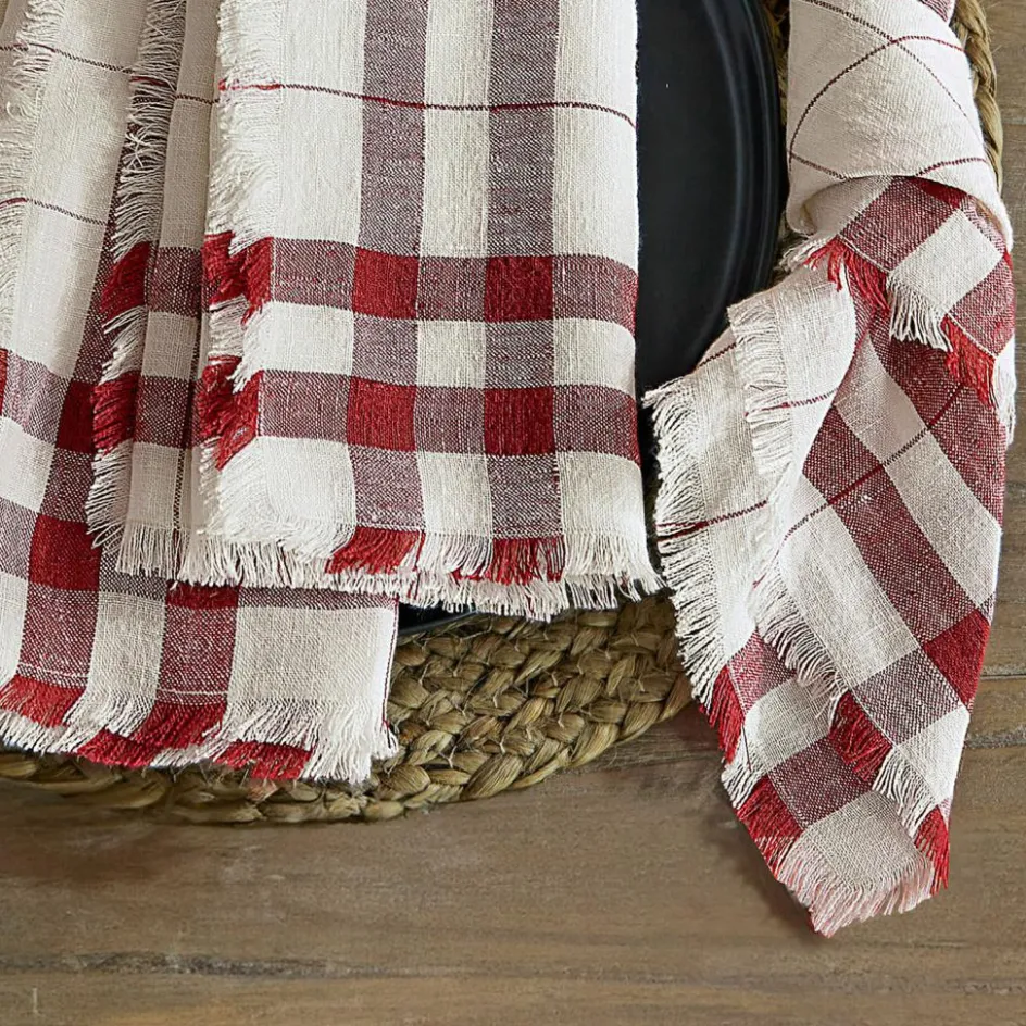 So fühlt sich Geborgenheit an: Diese Servietten aus reinem Leinen strahlen mit ihrem klassischen Karomuster in Rot und Creme eine unverwechselbare Gemütlichkeit aus – als wären sie direkt aus einer französischen Landhausküche entsprungen. Das gewebte Design bringt Textur auf den Tisch, während die charmanten Fransen an den Rändern das Gesamtbild auflockern. Der Stoff fühlt sich angenehm natürlich an und wird mit jedem Waschen noch weicher. Ob zum herzhaften Brunch oder zum stimmungsvollen Abendessen – diese Servietten setzen ein Zeichen für Stil mit Bodenhaftung.