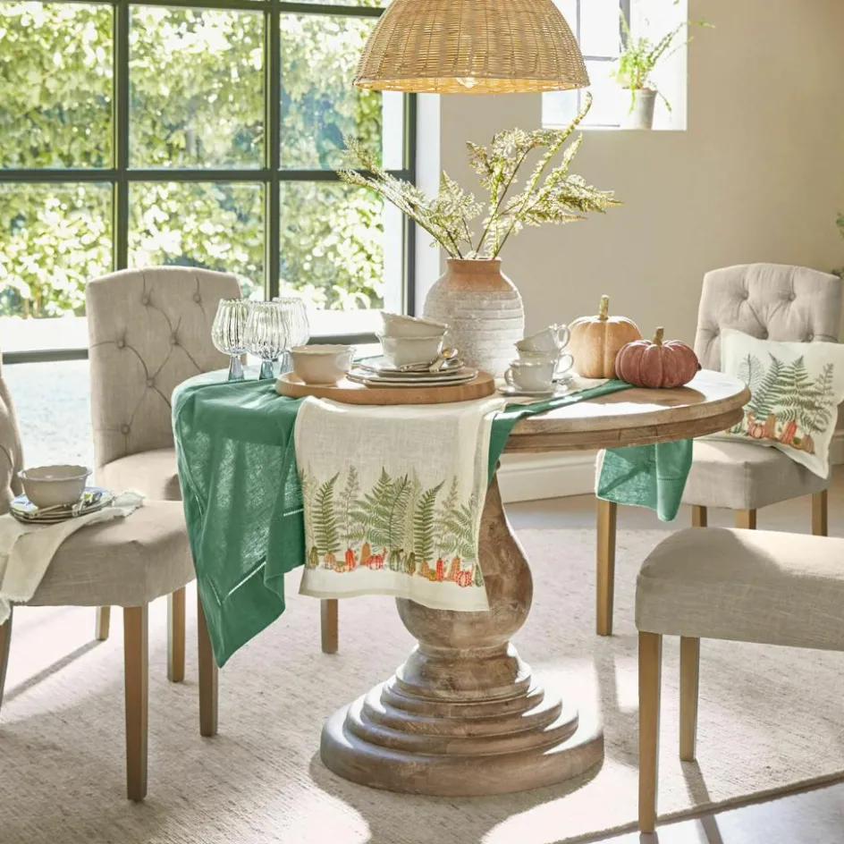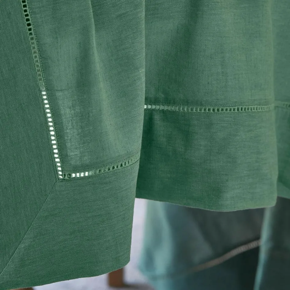 Verleihen Sie Ihrem Tisch einen Hauch von zeitloser Schönheit mit dieser edlen Tischdecke aus einem Leinen-Baumwolle-Gemisch. Das natürliche Gewebe verbindet die rustikale Robustheit des Leinens mit der sanften Weichheit der Baumwolle und schafft so eine unvergleichlich angenehme Haptik. Das umlaufende Lochmuster ist nicht nur ein Blickfang, sondern auch ein Zeichen feiner Handwerkskunst, das jede Mahlzeit in eine besondere Gelegenheit verwandelt. Ob beim Frühstück mit der Familie, einem festlichen Dinner oder einem gemütlichen Abendessen mit Freunden – diese Tischdecke setzt stets den richtigen Akzent. Kombinieren Sie sie mit schlichtem Geschirr für eine rustikale Atmosphäre oder mit feinem Porzellan für einen Hauch von Raffinesse.