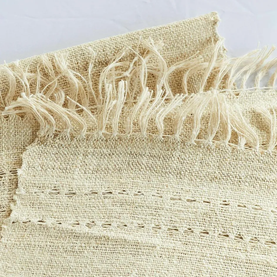 Pure Natur wurde für diesen edlen Tischläufer von Hand verarbeitet. Die Textil-Designer lieben das Naturmaterial Hanf, weil es mit seinem charakteristischen Melange-Effekt nicht nur edel aussieht, sondern auch strapazierfähig und langlebig ist. Das eingewebte Durchbruchmuster und dekorative Fransen an den Schmalseiten setzen einen hübschen Akzent. Der Läufer passt hervorragend zum Natural Living-Trend – mit seinem etwas gröberen Charakter harmoniert er ideal mit rustikalen Holztischen und Steinzeug-Geschirr. Durch seine Größe ist er für lange Tische perfekt und lässt sich auch für festliche Gästetafeln einsetzen. So schön und vielseitig kann Nachhaltigkeit sein.