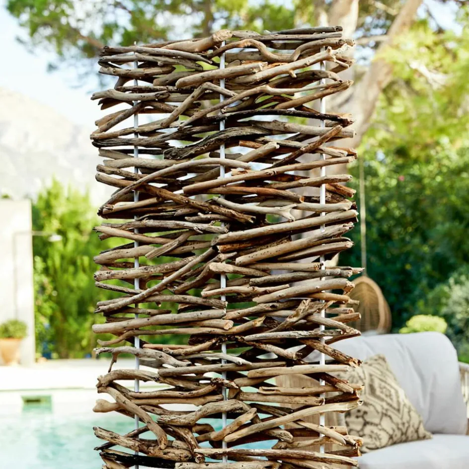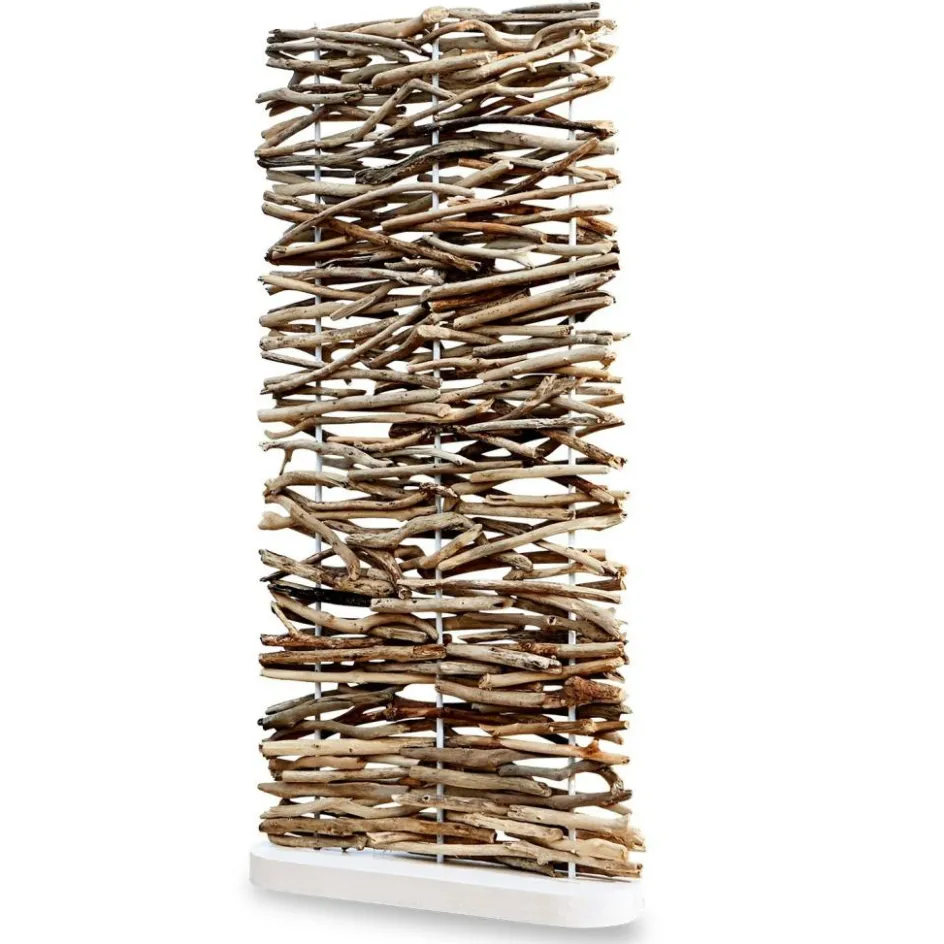 Dieser exklusive Paravent ist aus erlesenem Treibholz gefertigt, das sorgsam ausgewählt wurde. Holen Sie sich damit natürliches und maritimes Flair in Ihre grüne Oase. Auch edles Mahagoni-Holz und Eisen wurden dafür verarbeitet. Die Treibholz-Stücke sind kunstvoll an Metallstangen befestigt und bieten so einen schmückenden und dezenten Sichtschutz mit naturnaher Optik. Der Paravent ruht stabil auf einem hölzernen Fuß. Genießen Sie Ihre Privatsphäre im Garten und auf der Terrasse und freuen Sie sich auch über ein wenig zusätzlichen Schatten. Eleganter Outdoor-Luxus für Ihr Zuhause.