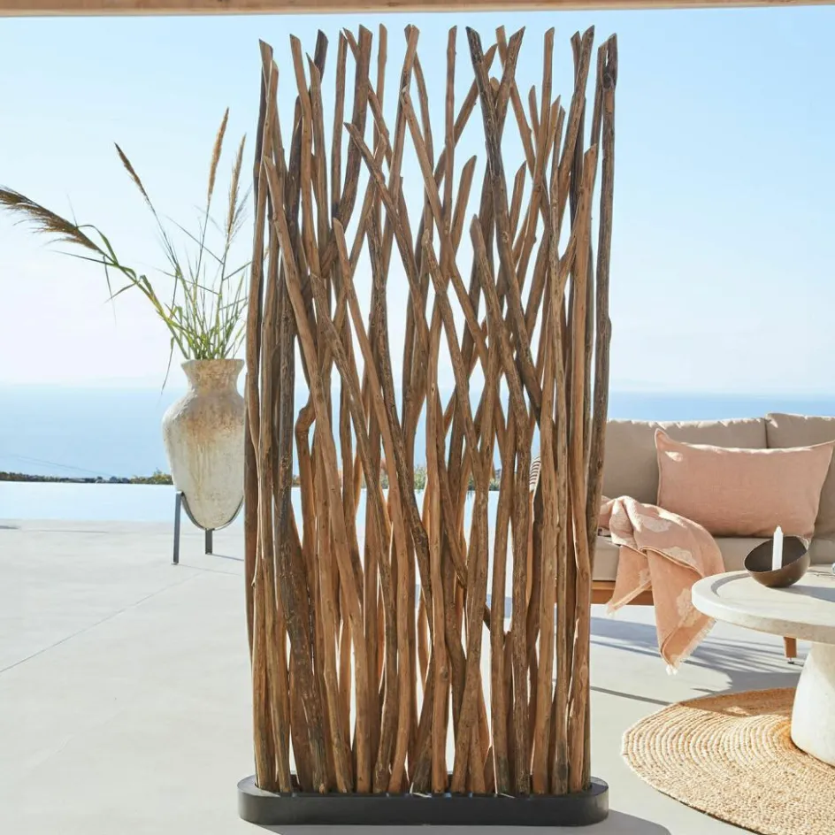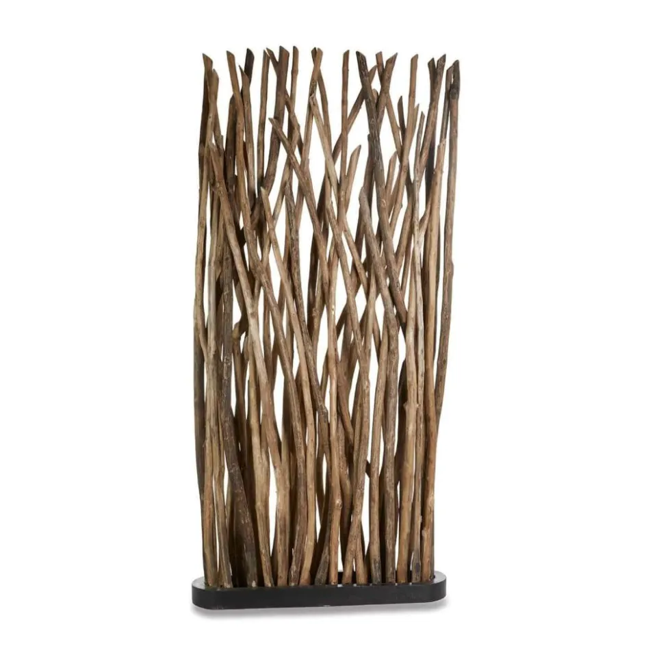 Natur pur und jedes Stück ein Unikat! Echtes Treibholz wurde für diesen Raumteiler liebevoll zusammengestellt und standfest auf eine Holzlatte montiert. Ein Kunstobjekt mit starker Aussagekraft, mit dem Sie zusätzlich Räume schaffen oder unerwünschte Blicke abwehren können. Schön auch beispielsweise, um große Fensterflächen wohnlich zu gestalten.
