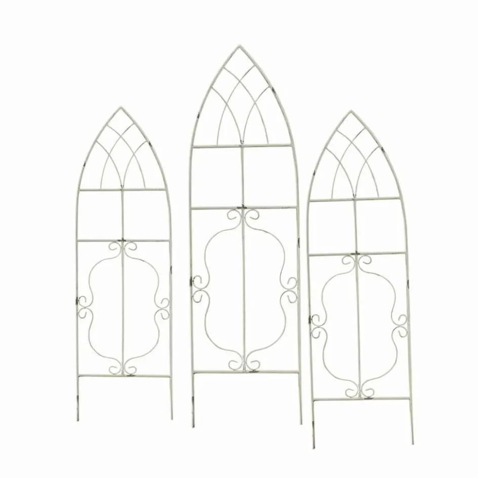 Dieses Rankhilfe-Set ist mehr als nur eine Stütze für Ihre Pflanzen – es ist ein dekoratives Highlight für jeden Garten. Die schlanken Metallgestelle mit ihren zarten Ornamenten und gotischen Bögen wirken wie aus einem englischen Landhausgarten entnommen. Das Antikgrau-Finish unterstreicht den nostalgischen Charakter und fügt sich harmonisch in jede Außenumgebung ein. Ob vor einer Mauer platziert oder mitten im Blumenbeet – die Rankhilfen sind der ideale Partner für Kletterrosen, Efeu oder andere Rankpflanzen, die sich kunstvoll um die geschwungenen Streben winden können. Praktisch und dekorativ in einem, laden sie zum Träumen und Verweilen ein.