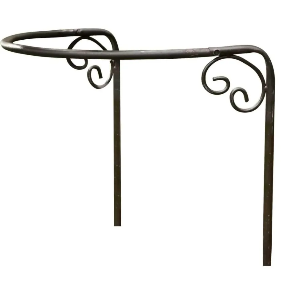 Sie möchten Ihre wunderschönen, aber zunehmend wild wachsenden Strauchrosen zukünftig im Zaun halten. Kein Problem. Diese halbrunde und äußerst stilvolle Rosenstütze aus antikschwarzem Eisen bildet den passenden Schutz und vermeidet zugleich, dass die schönen Pflanzen vermehrt umknicken. Außerdem ist die Rosenstütze mit den minimalen Ornamenten an den beiden Enden zugleich eine schöne Idee, um empfindlichen Pflanzen auch an der Hauswand oder an einer Mauer entsprechenden Schutz zu bieten. Die Handhabung ist ganz einfach, denn das Eisengestell wird an den zwei Endpfeilern nur in die Erde gesteckt. Unser Tipp: zwei Rosenstützen bilden zusammengesteckt einen Kreis und rahmen die Stauden und Rosen somit komplett ein.