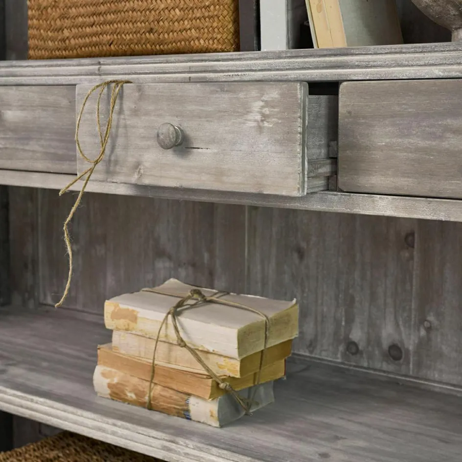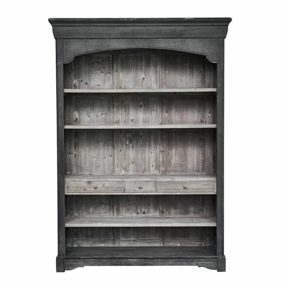 Dieses Regal ist kein leiser Mitspieler, sondern eine eindrucksvolle Erscheinung – hoch gewachsen und zugleich bodenständig. Es erinnert an jene Stücke, die einst Wände historischer Gutshäuser zierten: groß, massiv und gemacht für Generationen. Die Kombination aus schwarzem Antik-Finish und naturfarbenem Innenleben schafft eine reizvolle Tiefe. Durch seine großzügige Höhe rückt es Bücher, Vasen oder Geschirr stilvoll ins Rampenlicht – und bietet zugleich Stauraum in den kleinen, mittig platzierten Schubladen. Die geschwungene Abschlusskante und die sichtbare Holzstruktur verleihen ihm ein nostalgisches Flair, das sich perfekt in moderne Landhauskonzepte einfügt. Ein Regal, das mehr als nur praktisch ist – es prägt den Raum.