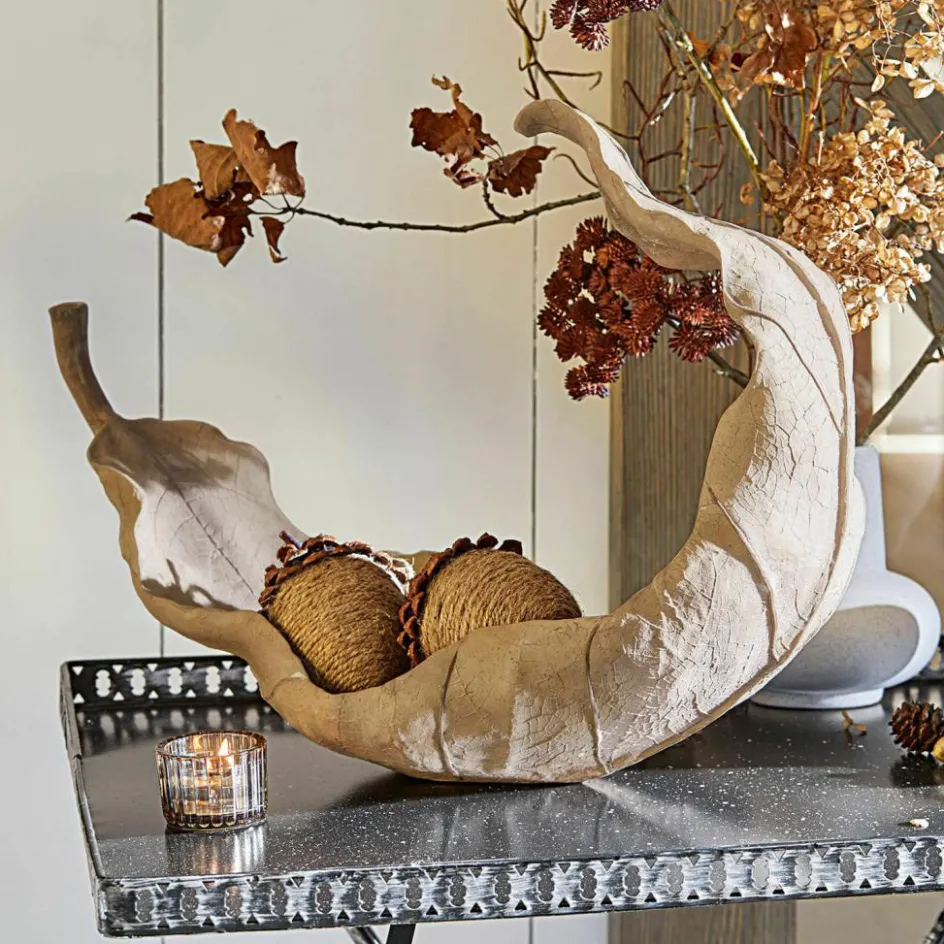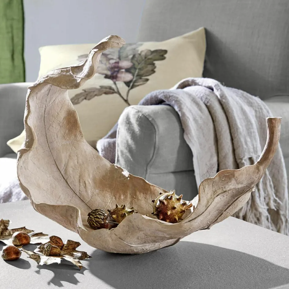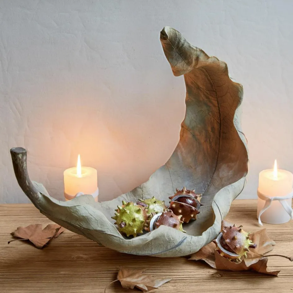 Wenn Sie eine Liebe für außergewöhnliches Design haben, dann gehört diese Schale zur Ihrer ersten Wahl. Auffallend groß und faszinierend originalgetreu gefertigt, zeigt sie sich in Form eines herabfallenden Blattes. Die elegante, nahezu schwebende Silhouette und die filigranen Details stehen für die hochwertige Verarbeitung aus Polyresin, eine bestimmte Art von Kunststein, der für kunstvolle Skulpturen gerne eingesetzt wird. Dazu kommt das Farbfinish mit feinen Schattierungen, die das Accessoire perfekt vollenden. Eine wunderschöne Dekoschale, die Ihren guten Stil perfekt zum Ausdruck bringt und einen besonderen Platz in Ihrem Ambiente verdient hat – vielleicht im Entree, auf dem Sideboard im Büro oder im Regal im Wohnzimmer. Auch als originelle Geschenkidee eignet sich die Schale hervorragend.